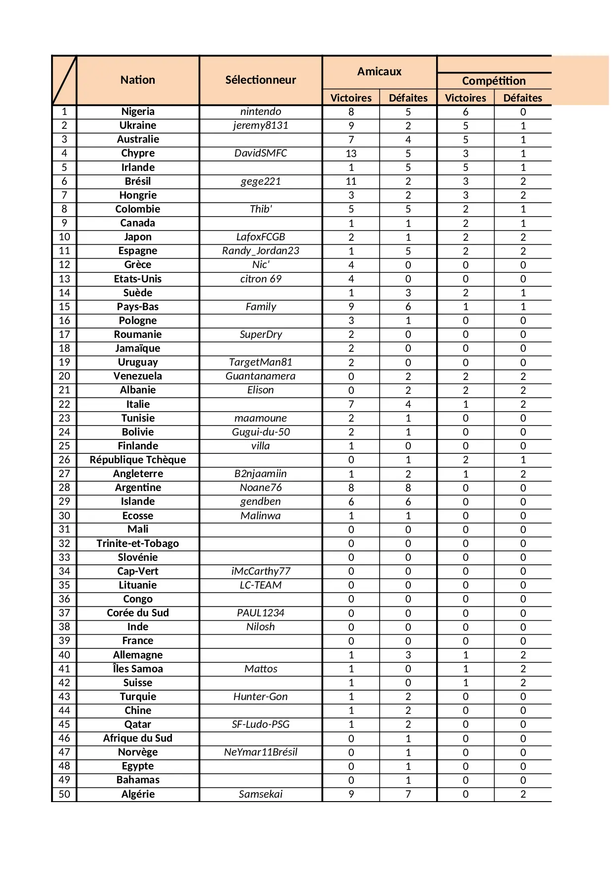 suisse qatar turquie chine afrique finales defaites mattos nation samoa victoires nilosh hunter allemagne france