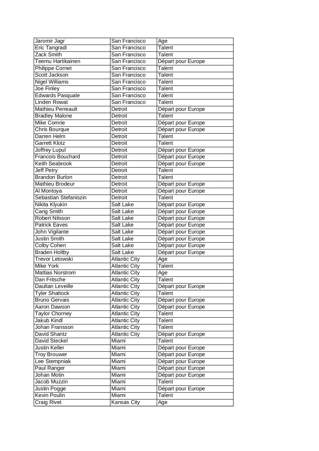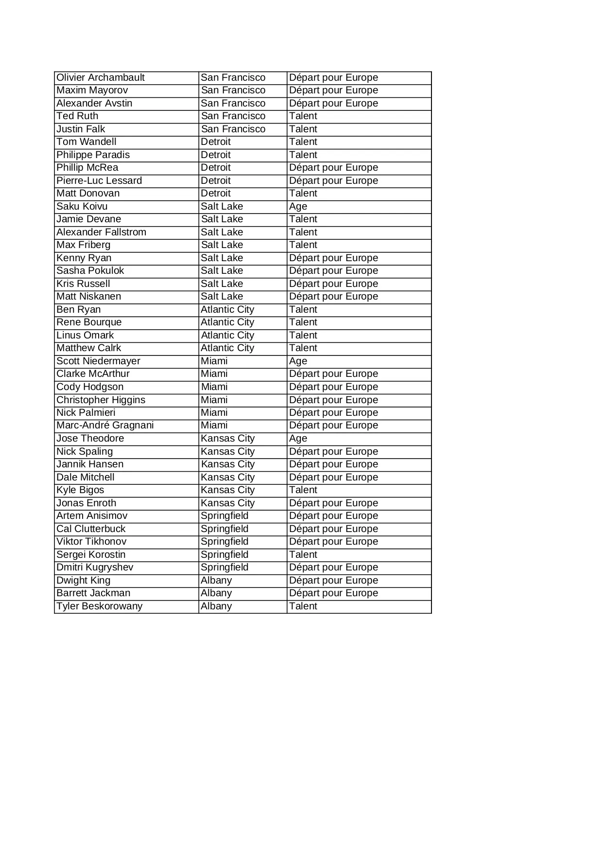 halifax quebec kansas springfield detroit francisco depart miami sherbrooke europe atlantic talent montreal albany laval
