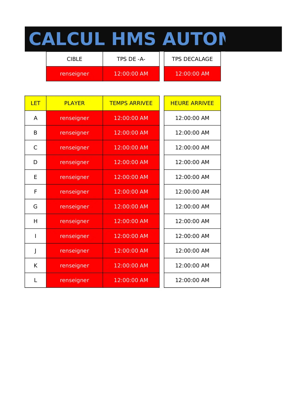 respectant cases calcul heure arrivee renseigner automatique decalage temps cible depart player rouge