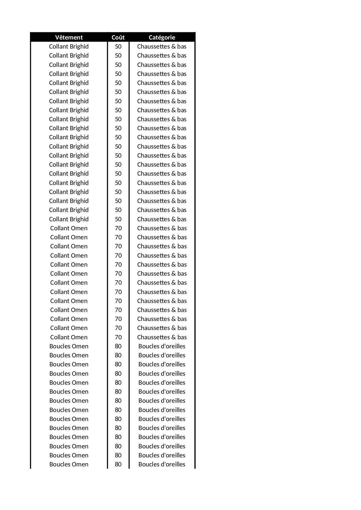 petits chaussures bracelets hauts bottes vetements colliers oreilles ceinture manteaux jupes ceintures chaussettes boucles gants