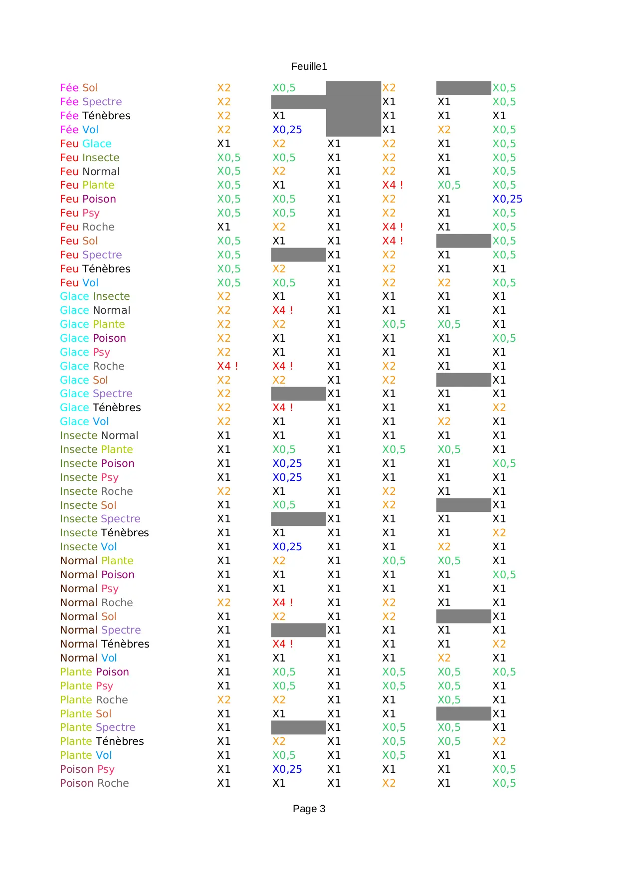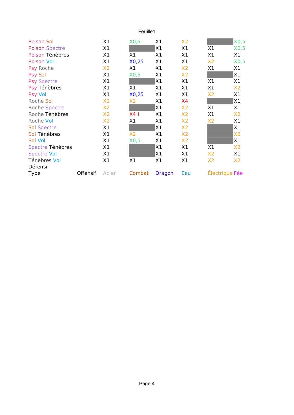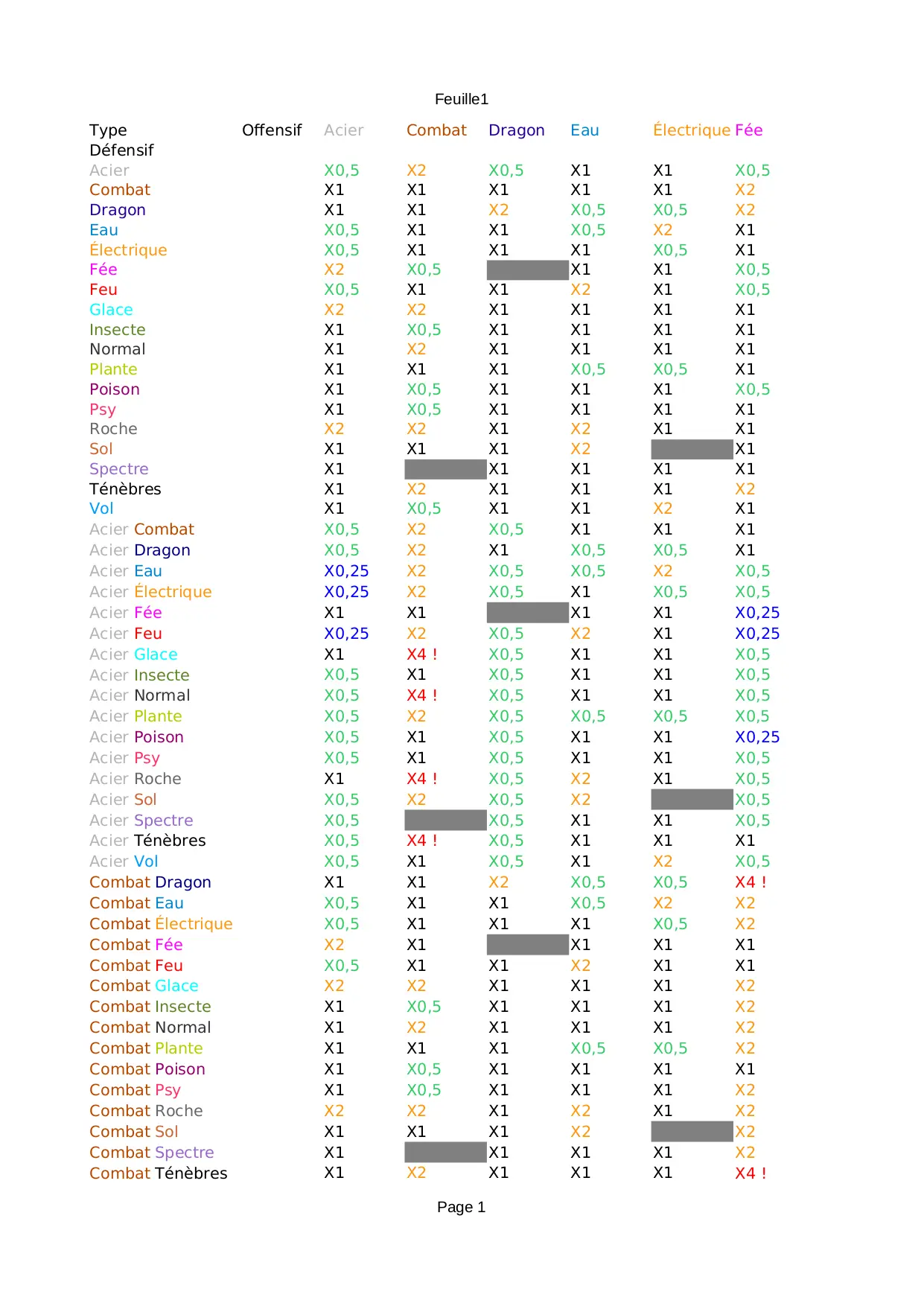 Faiblesses (XLS)