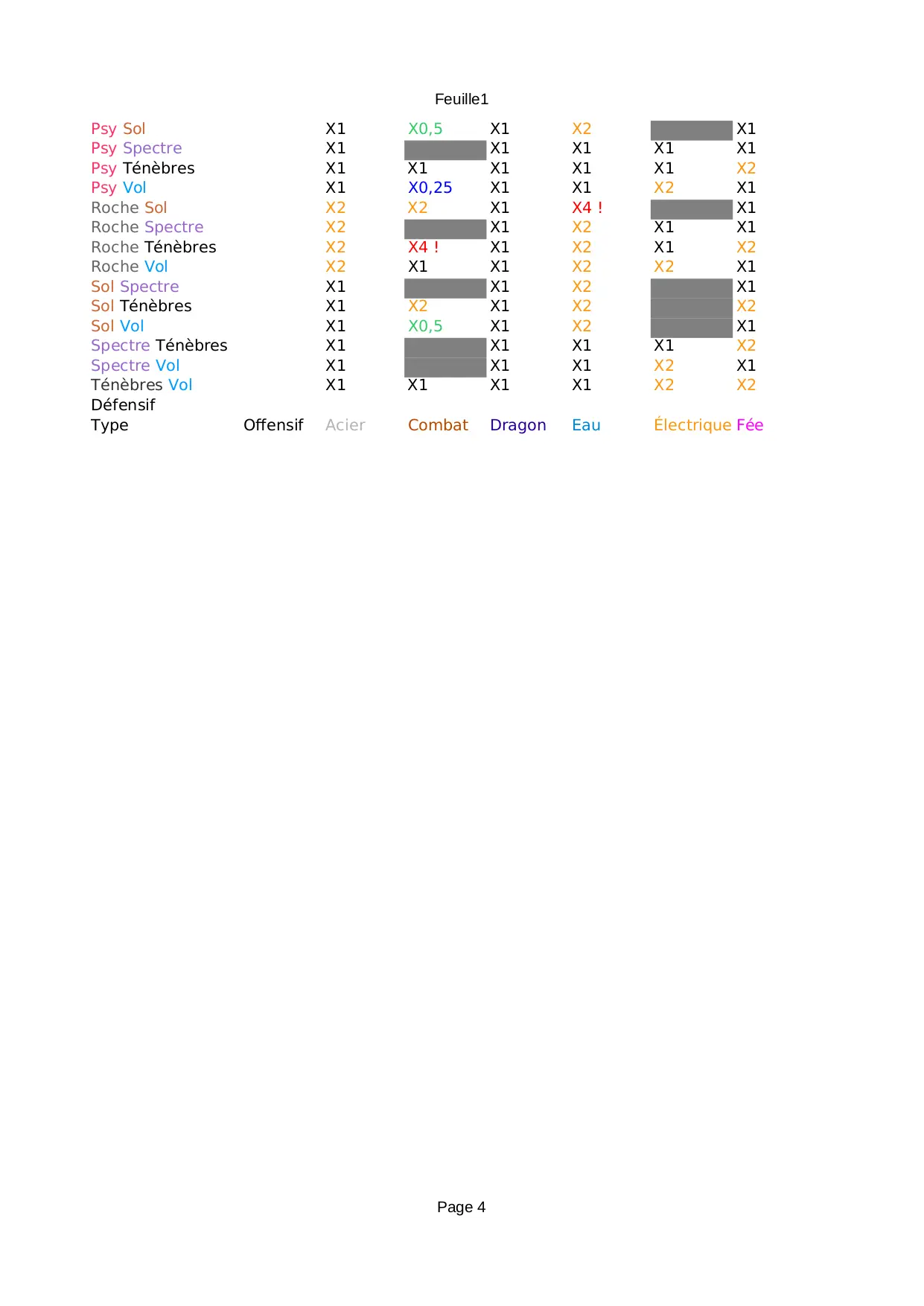 tenebres spectre combat offensif defensif insecte glace dragon acier poison roche electrique normal plante