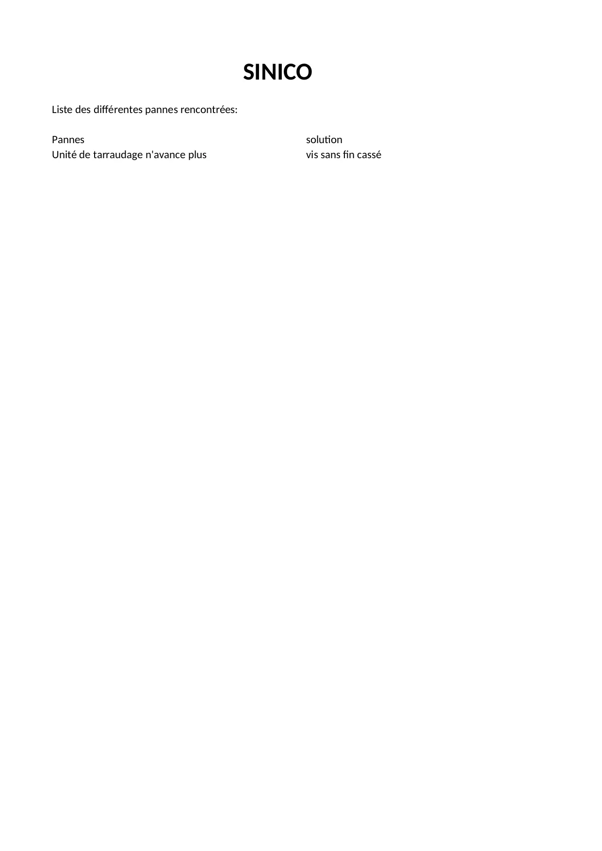 fournisseur solution unite liste tarraudage casse avance sinico differentes rencontrees pannes