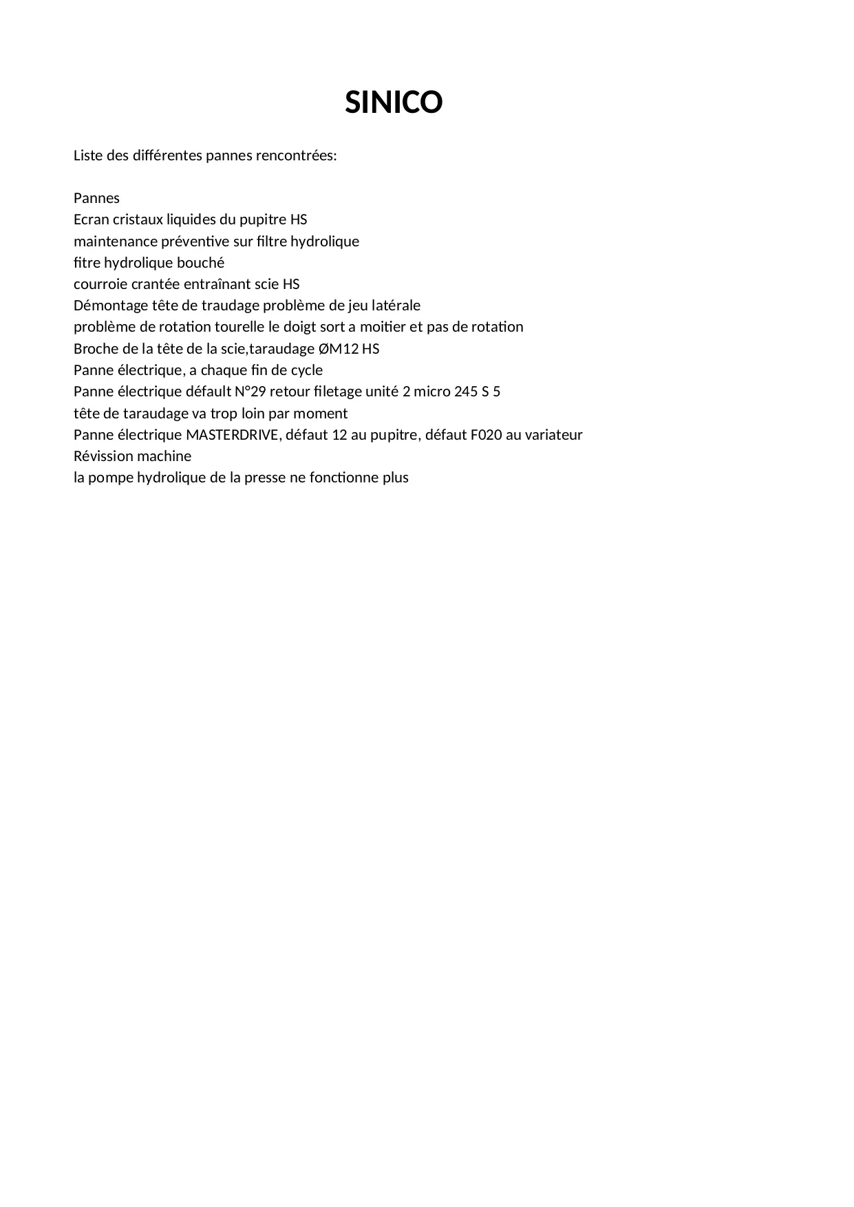 course hydrolique rotation verification micro defaut unite broche electrique taraudage changement filtre panne roulement pupitre