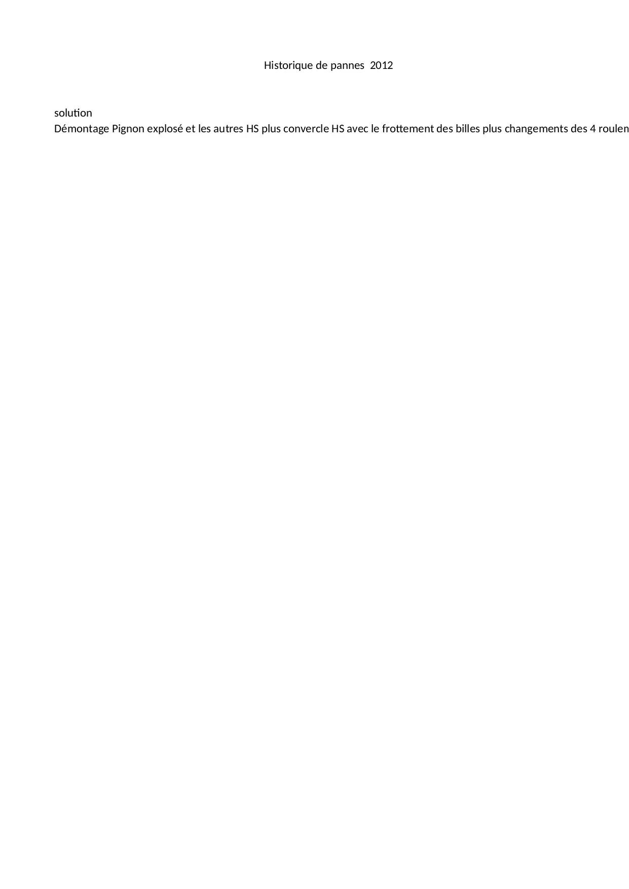 historique demontage billes pannes pignon autres roulements boete anormal explose vitesse changements convercle frottement taraudage