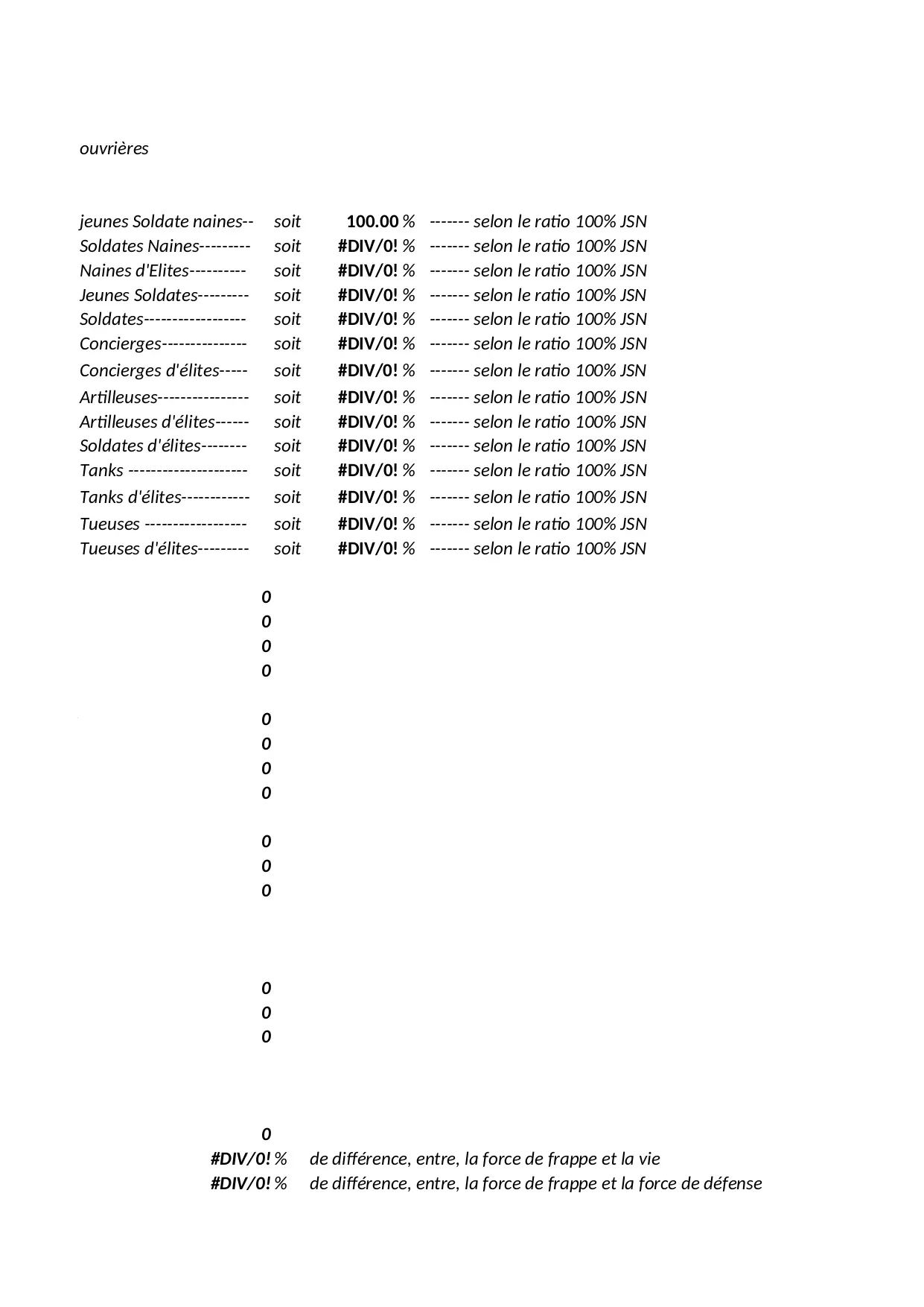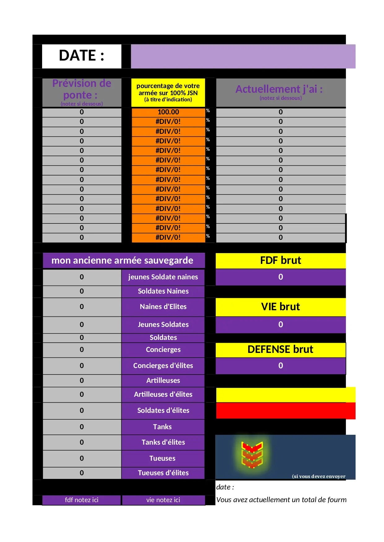 votre armée (XLSX)