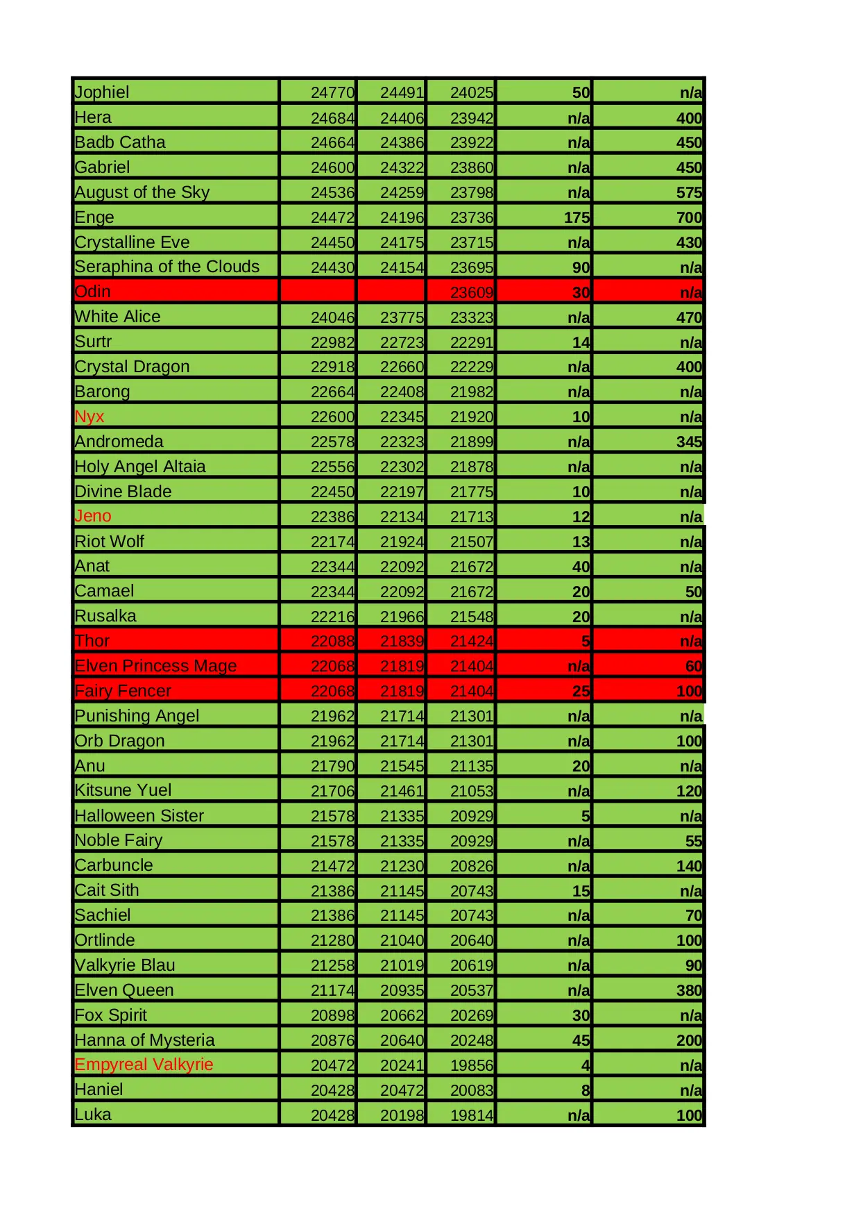 RAGE OF BAHAMUT GODS - ORDER ONLY (XLSX)