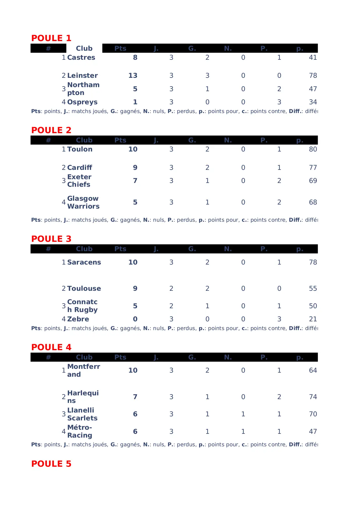 toulouse essais exeter bonus journee quins munster racing zebre gagne scarlets saracens poule perdu contre