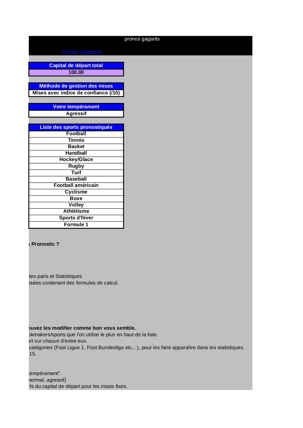 depart sports pouvez mises agressif gestion statistiques temperament automatique votre bookmakers normal capital prudent paris