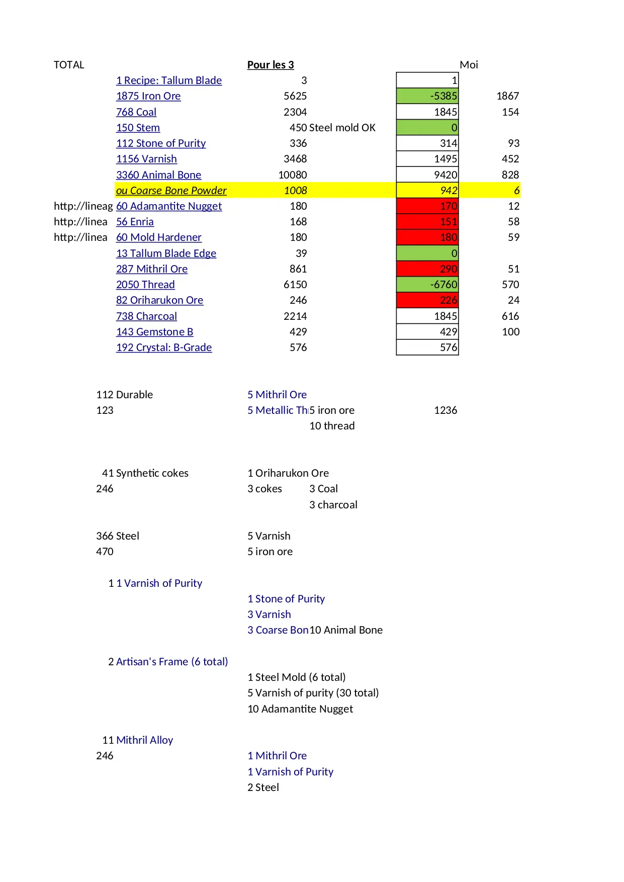 mithril varnish purity nugget thread total metallic tallum charcoal pmfun oriharukon adamantite lineage animal steel