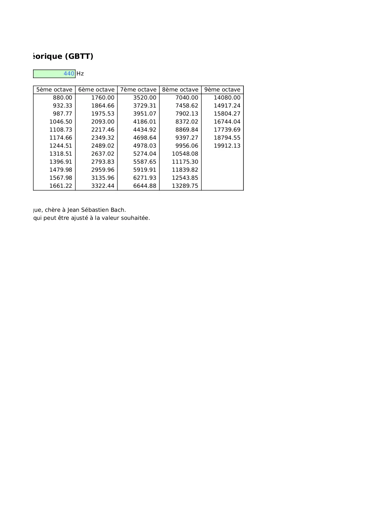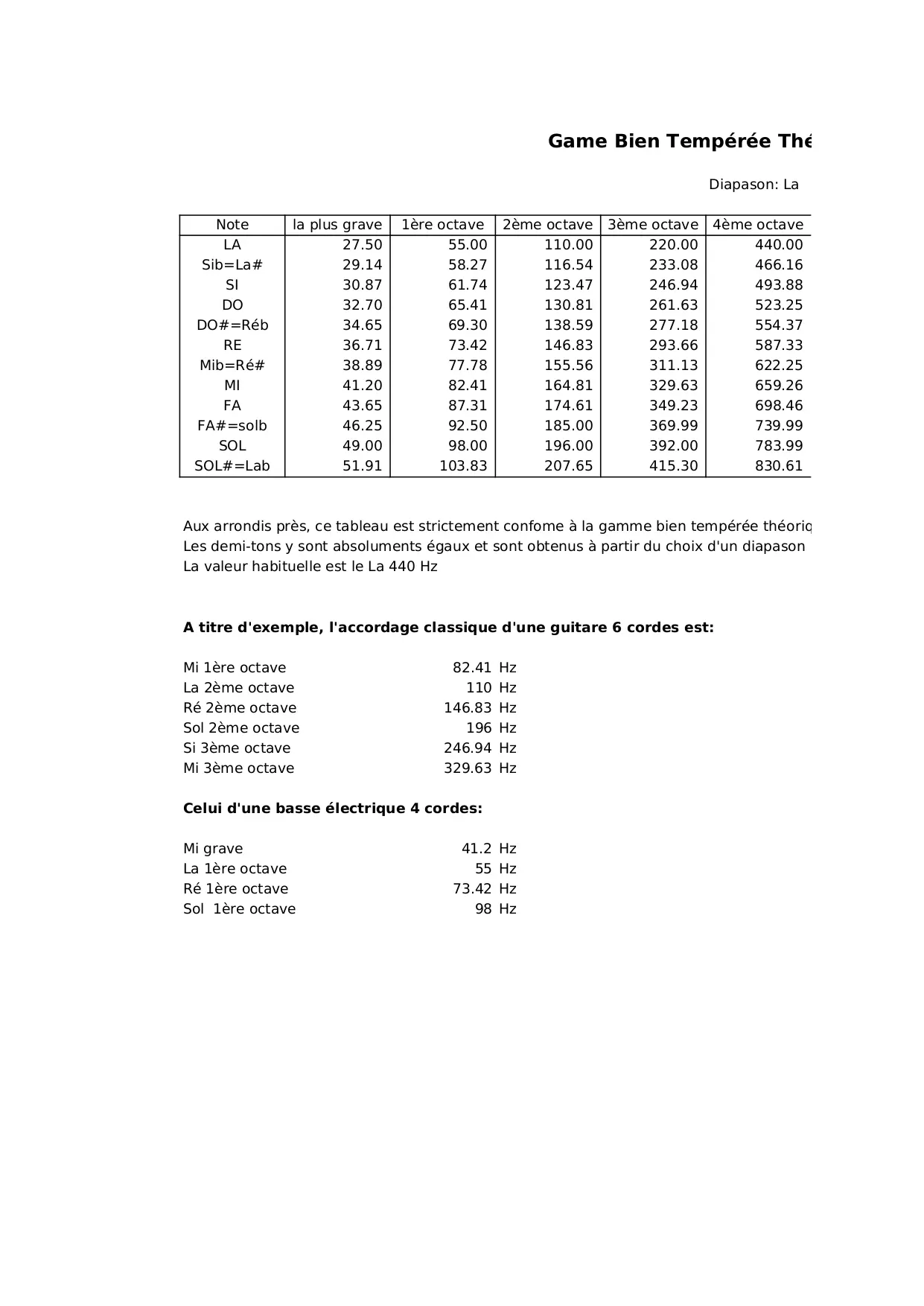 valeur diapason ajuste cordes partir choix absoluments egaux souhaitee octave habituelle obtenus temperee grave theorique