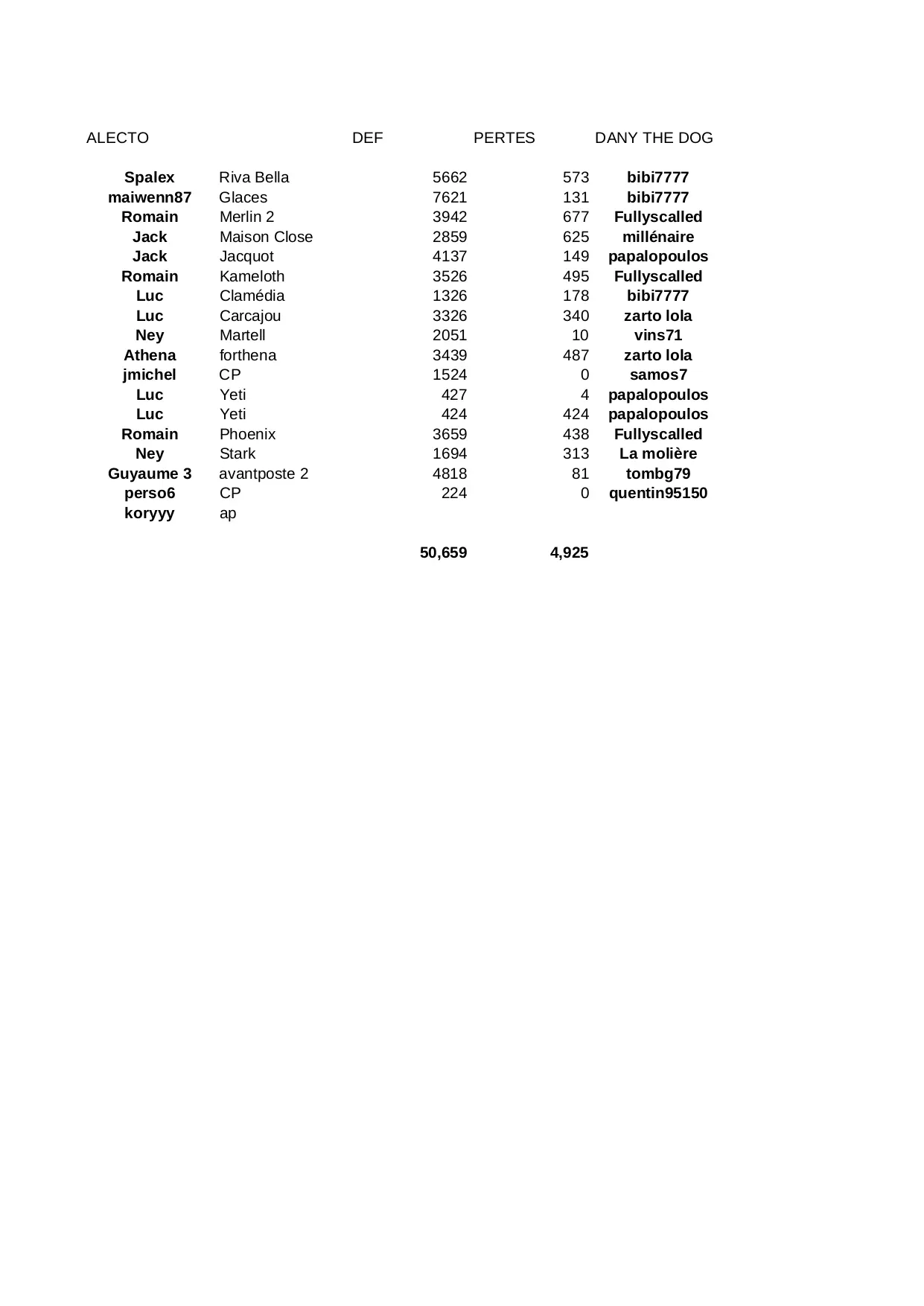 romain papalopoulos phoenix fullyscalled bibi7777 avantposte samos7 zarto alecto jmichel athena stark pertes guyaume moliere