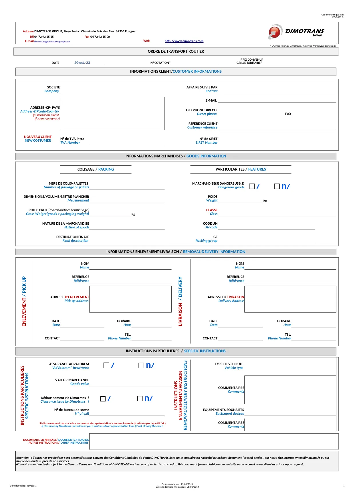 Ordre de Transport routier (XLSM)