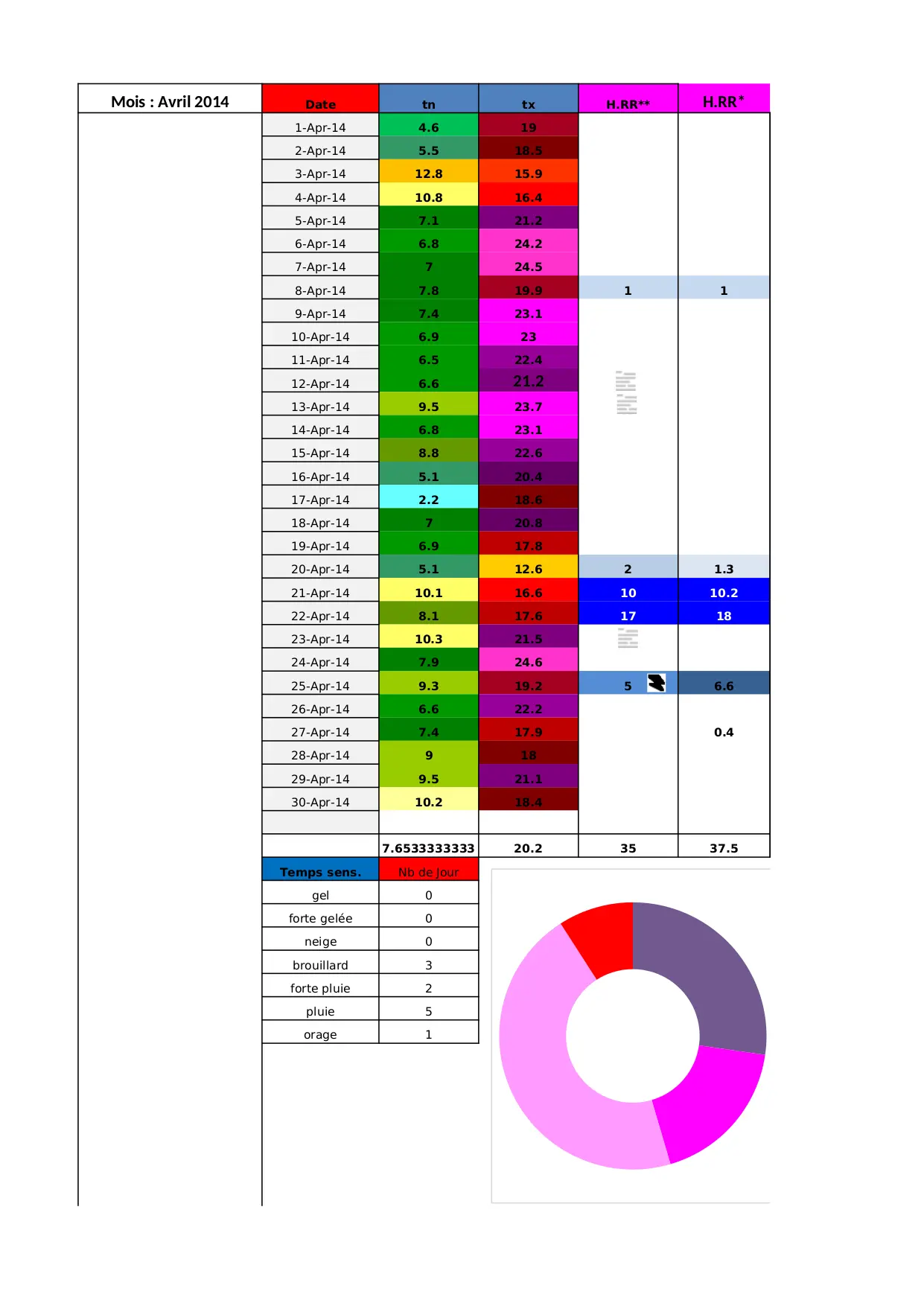 avril orage pluie temps brouillard gelee total forte cumul temperature maxime pluviometre moyenne neige mensuel