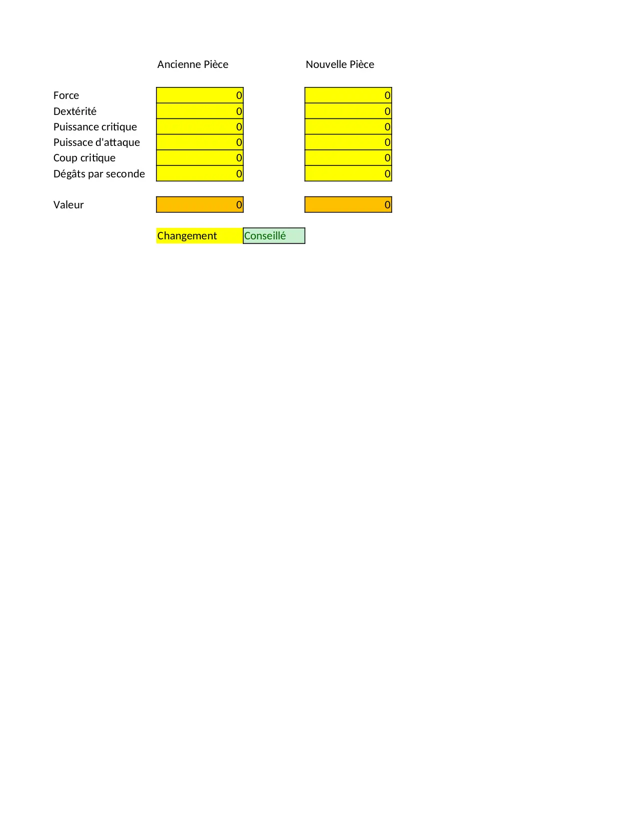 critique ancienne colonne1 puissance changement colonne4 dexterite valeur degats seconde puissace attaque colonne5 nouvelle colonne2