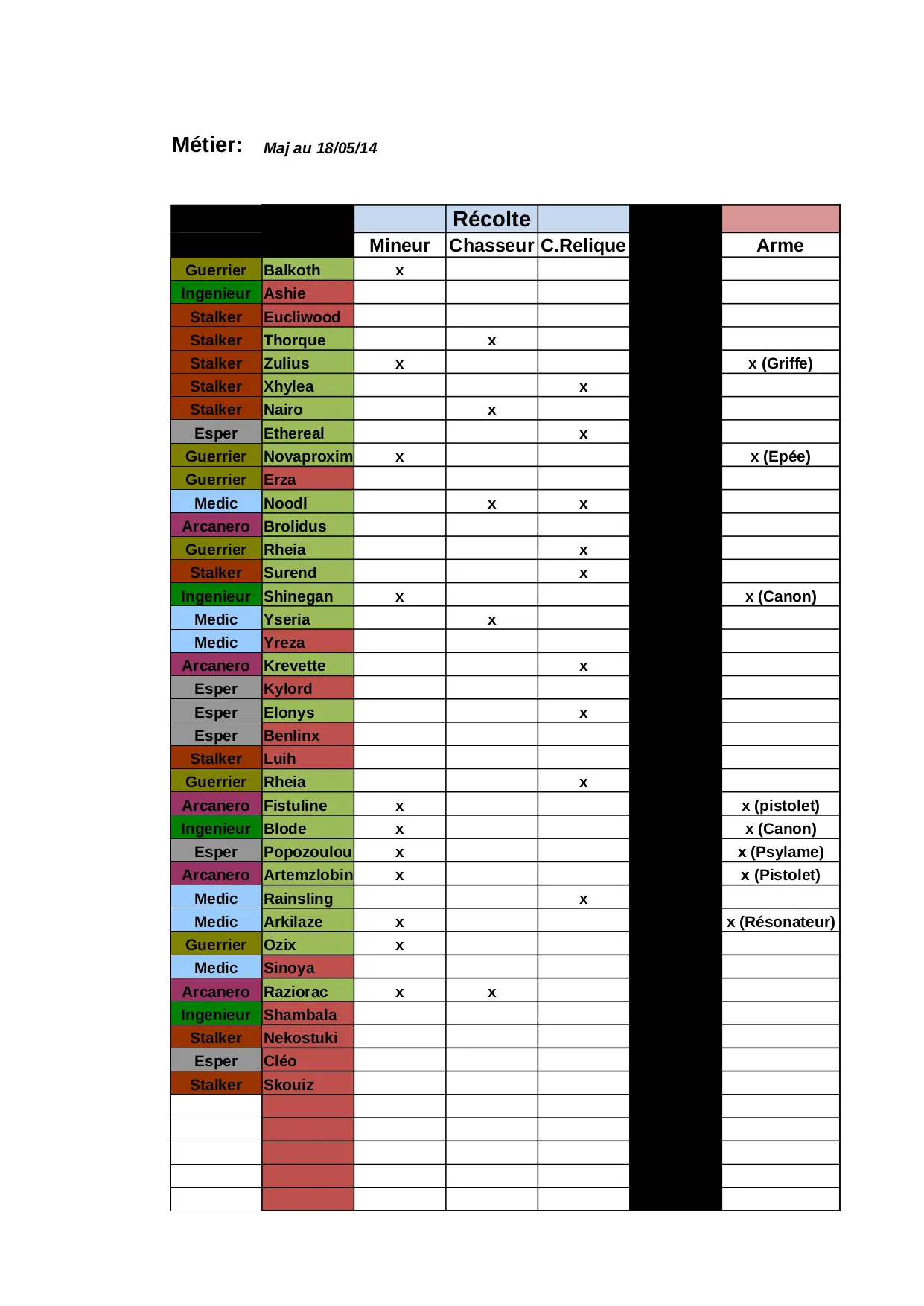 pistolet chimiste ingenieur esper tailleur elonys kylord canon stalker medic rheia benlinx architecte guerrier arcanero