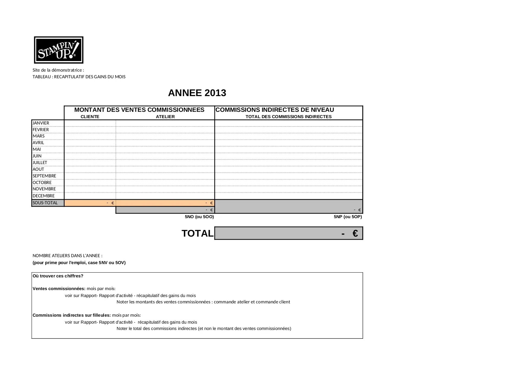 STAMPIN UP et IMPOTS 2013 vierge (XLS)