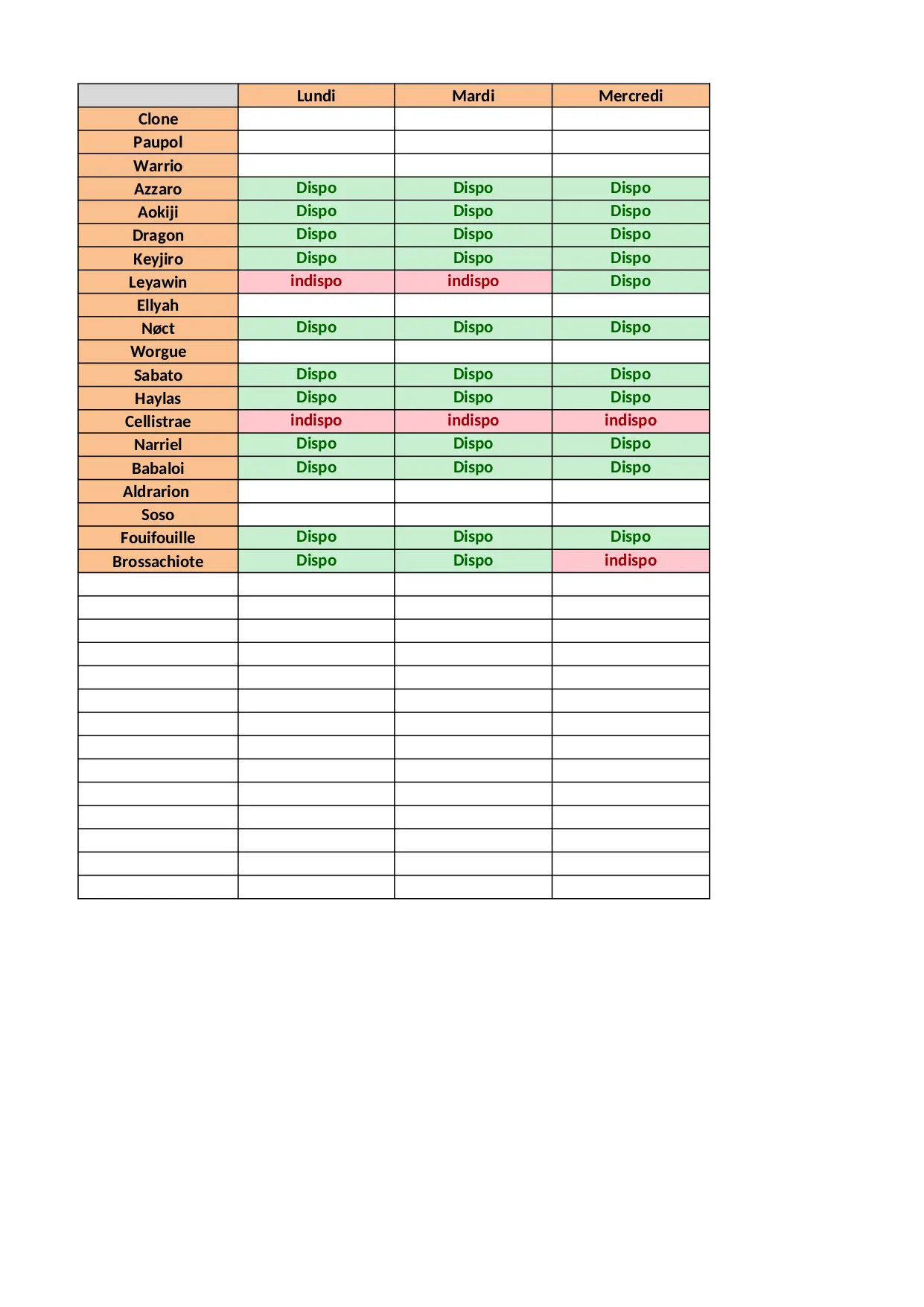cellistrae haylas fouifouille babaloi ellyah indispo dragon aldrarion sabato dispo leyawin keyjiro worgue narriel lundi