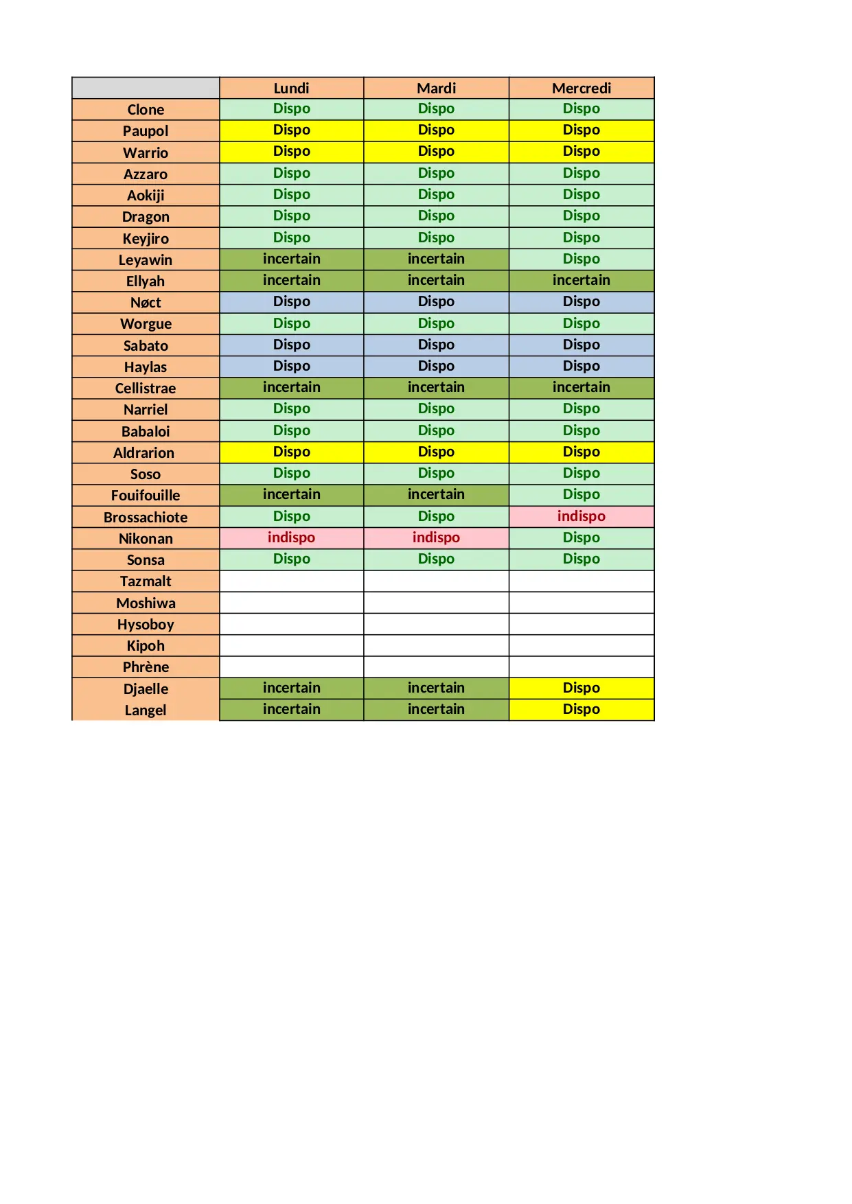 Disponibilité des joueurs (XLSX)