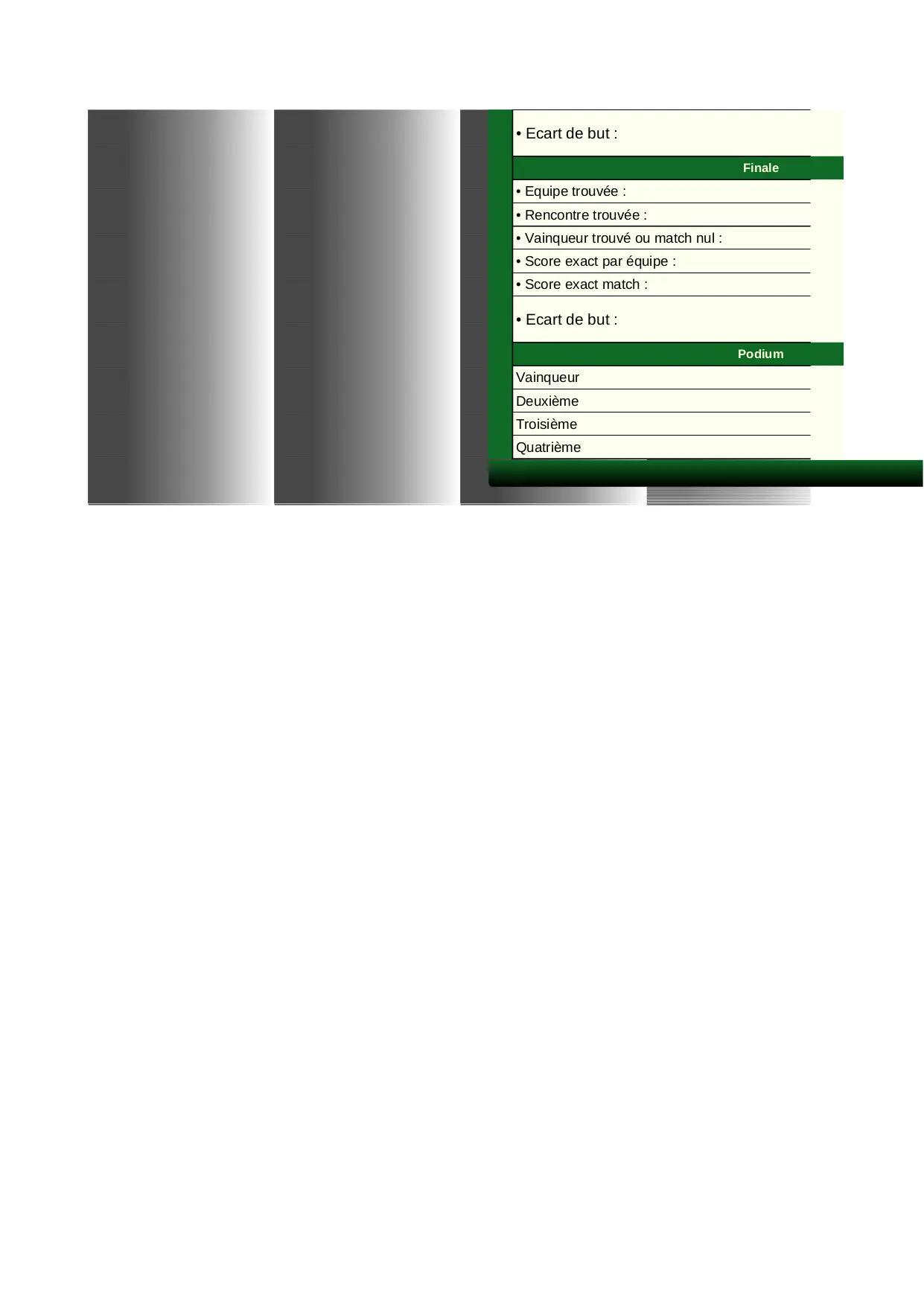 equipe points ecart total phase vainqueur match score poule trouve rencontre exact trouvee finale podium