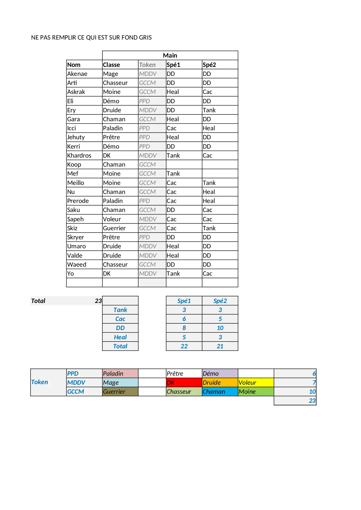 pretre askrak voleur moine waeed valde chasseur chaman umaro paladin druide guerrier token total classe