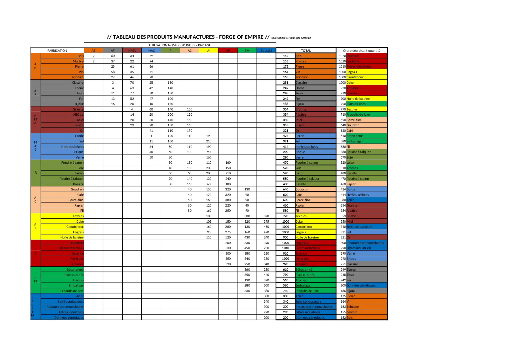 porcelaine produits genetiques granite sechees textiles herbes cuisines poudre albatre emballage cuivre corde goudron beton