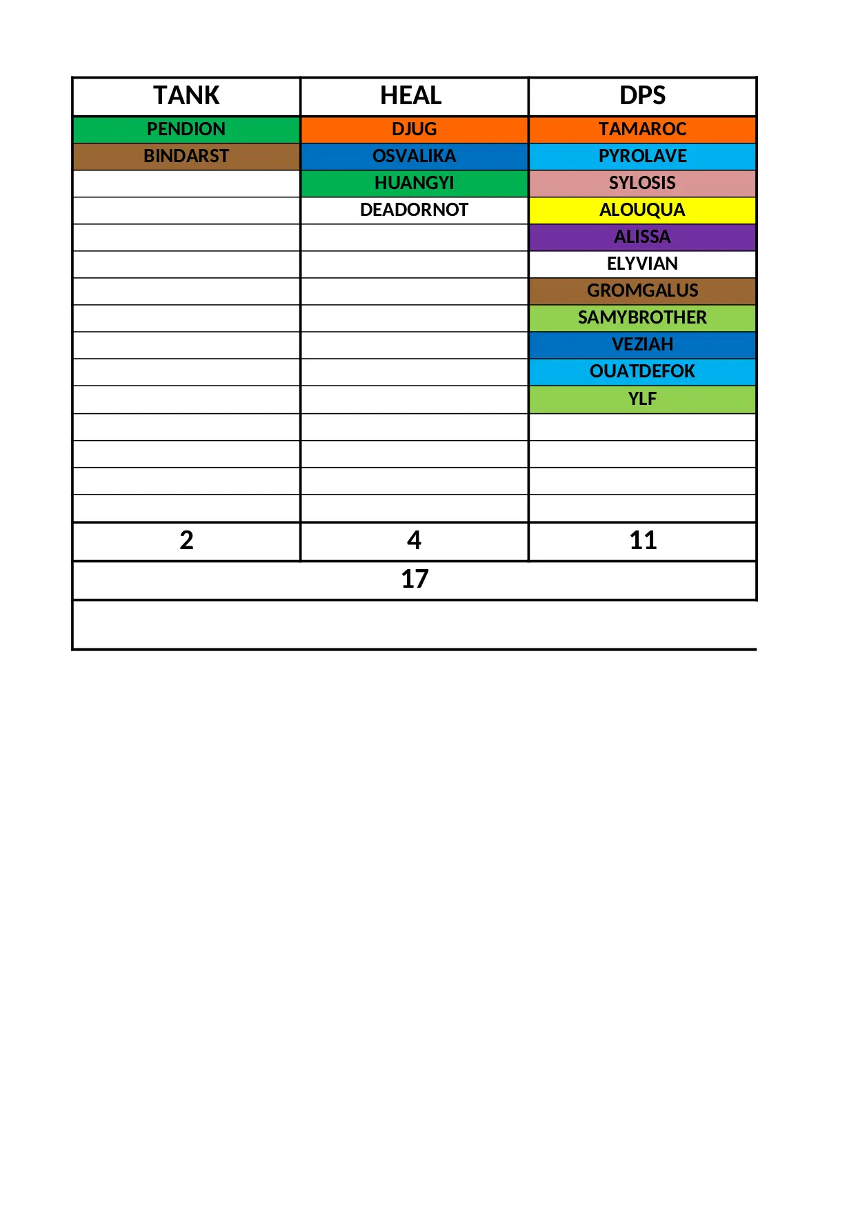 samybrother pendion elyvian moine tamaroc alissa alouqua gromgalus chaman veziah voleur demoniste ouatdefok paladin pretre
