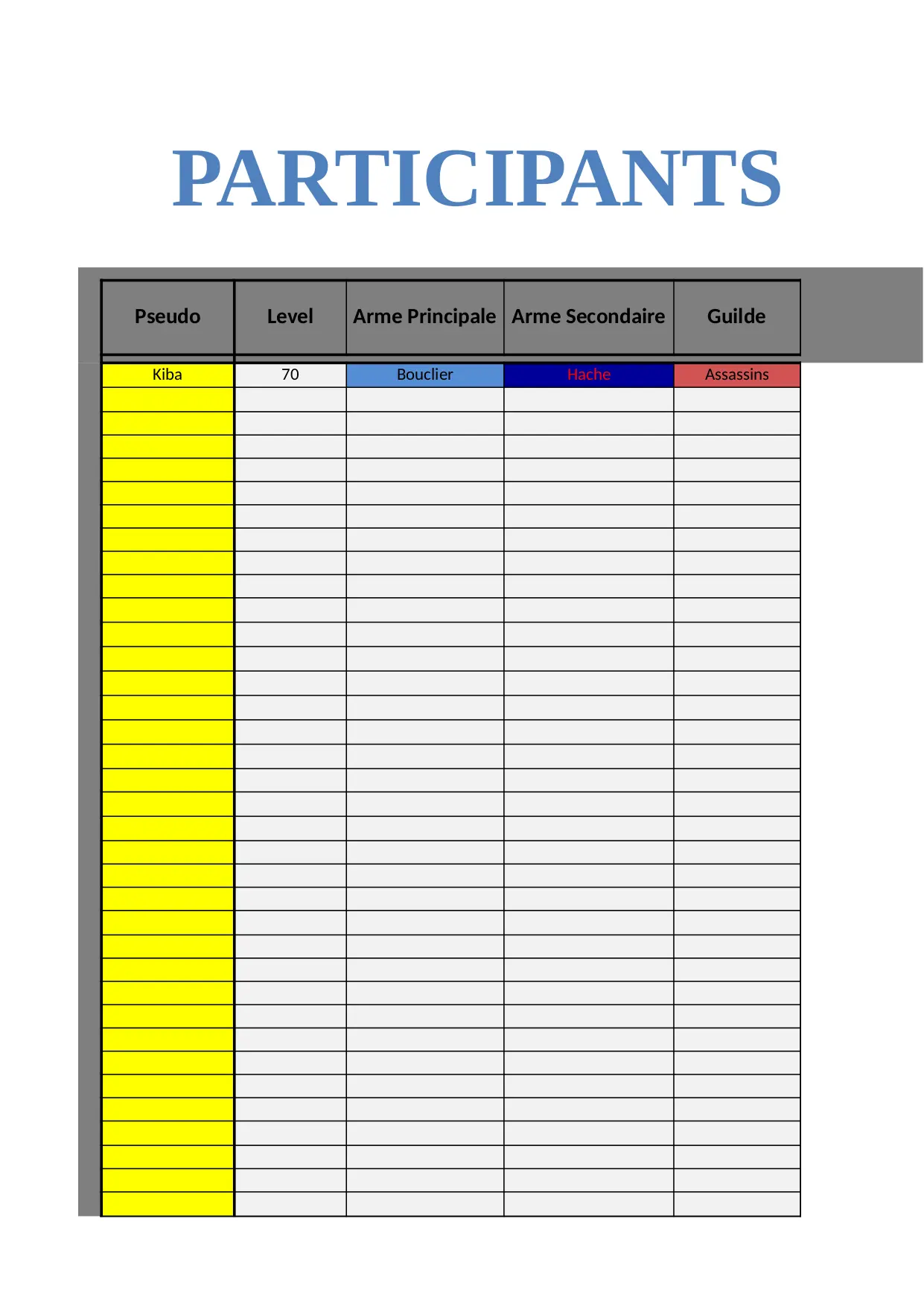 baton pseudo guilde hache omasa lames griffe grimoire groupe bouclier tachi level assassins harpe score