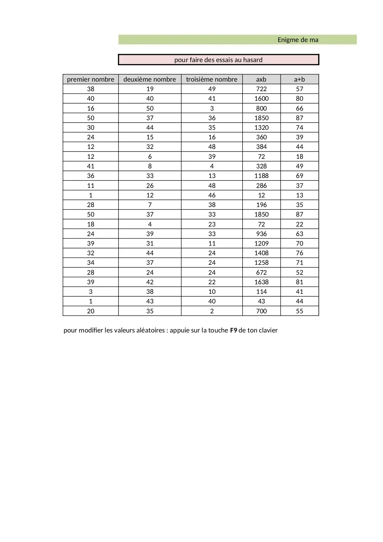 nombre chiffres somme nombres enigme verifient propriete deuxieme valeurs ecart troisieme premier multiplie chiffre proposer