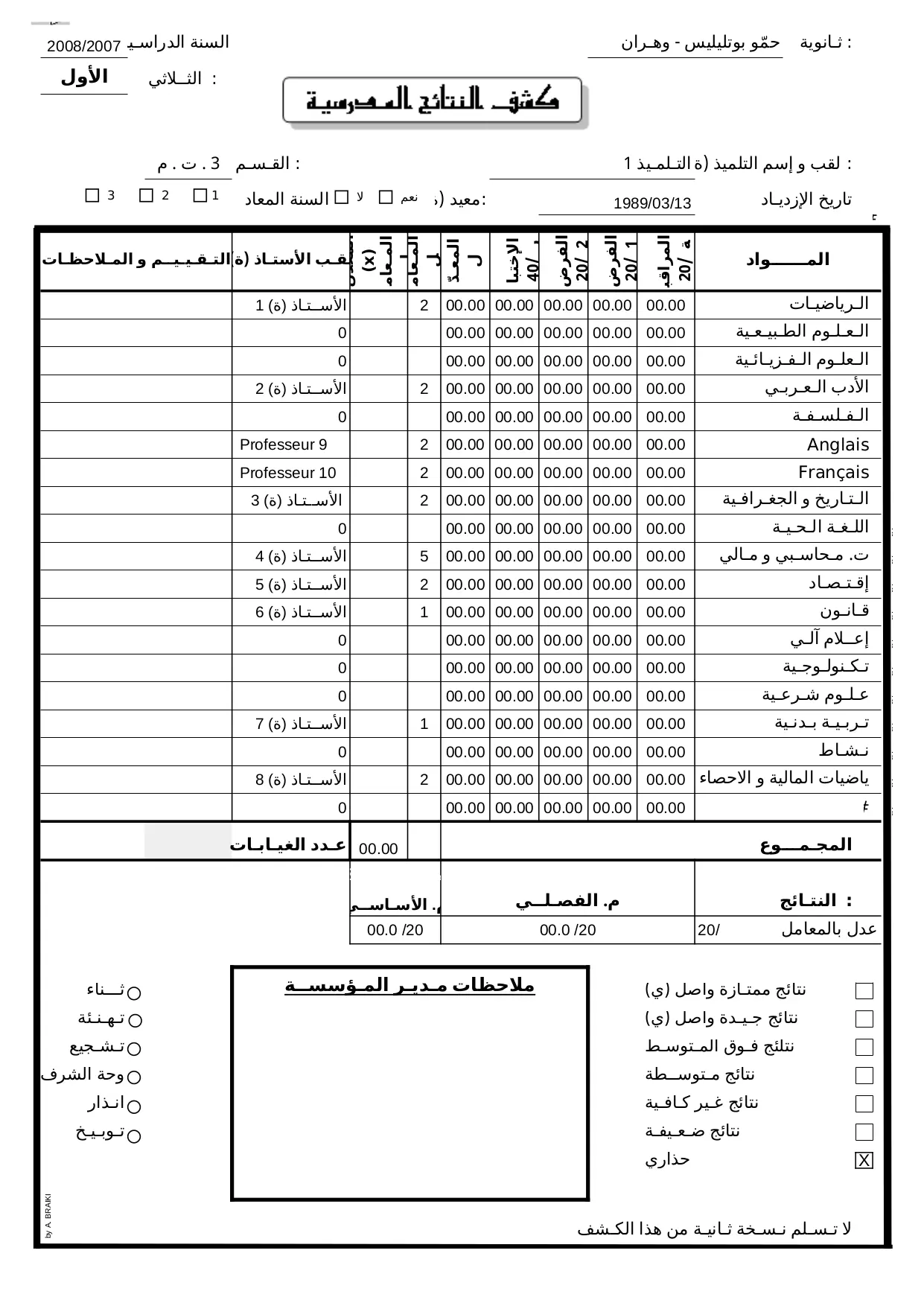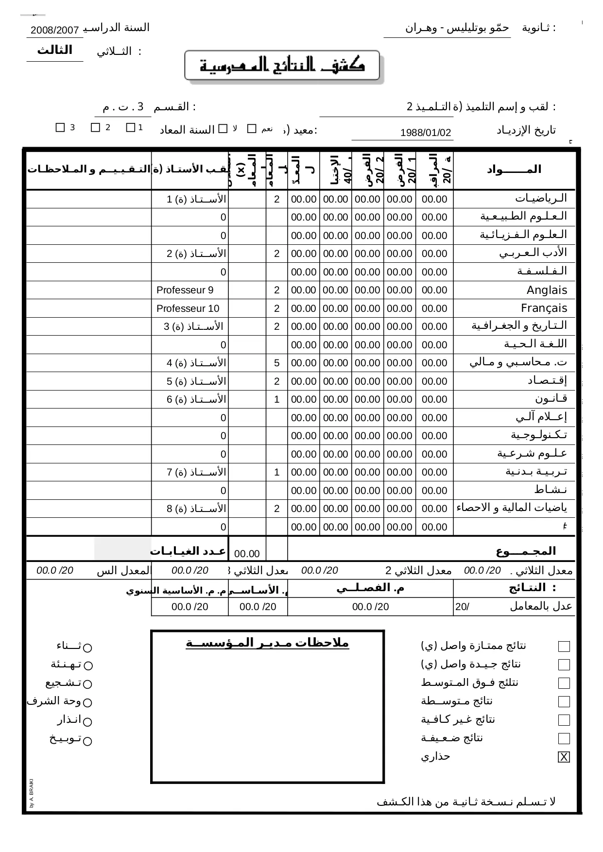 Bulletins de Notes_DZ (XLS)