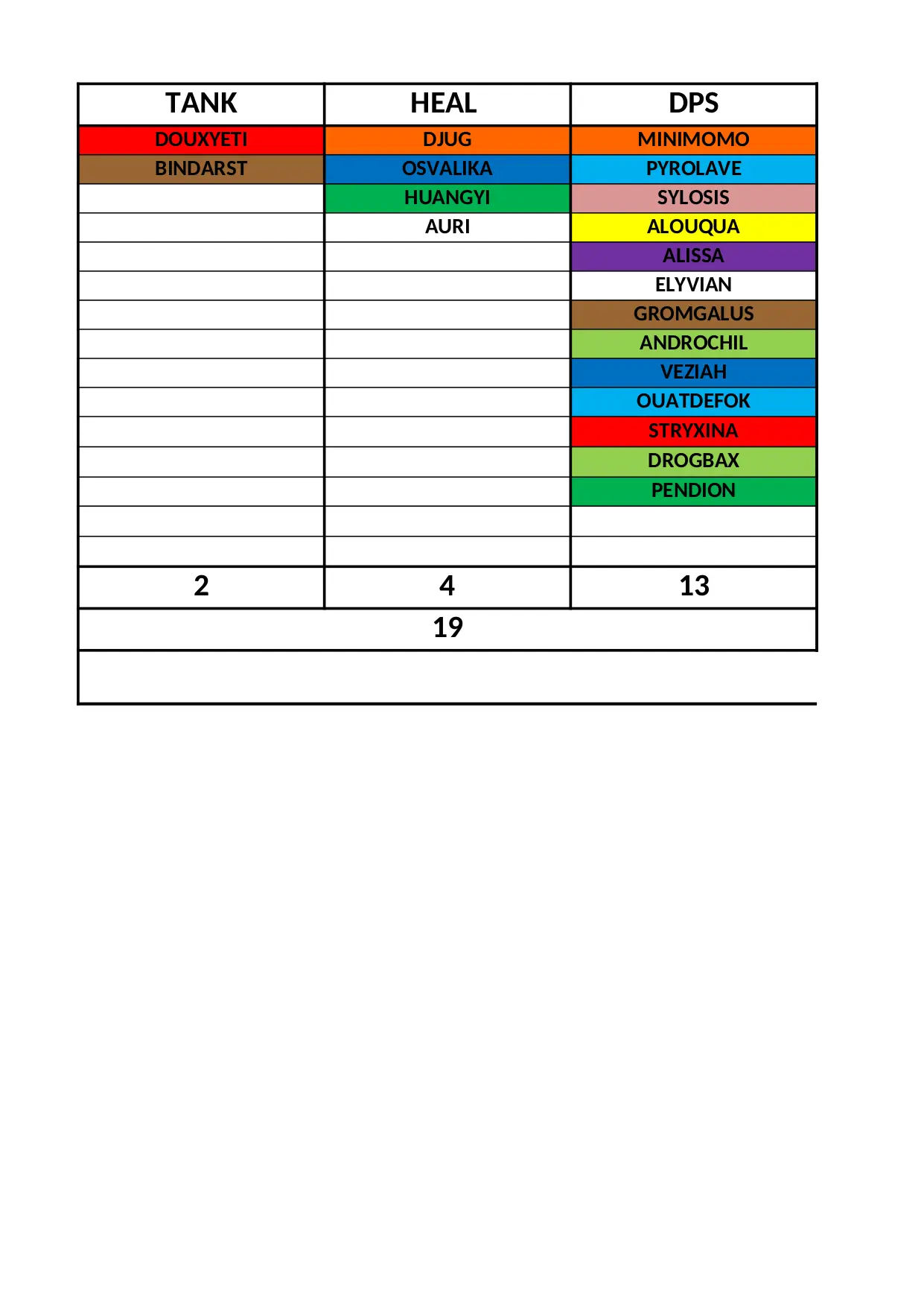 veziah paladin minimomo pretre androchil pendion chaman stryxina drogbax guerrier demoniste voleur gromgalus douxyeti ouatdefok