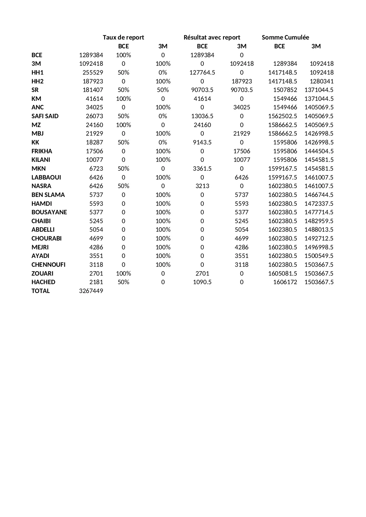 chennoufi report hached kilani hamdi chaibi bousayane ayadi cumulee zouari mejri chourabi abdelli somme total