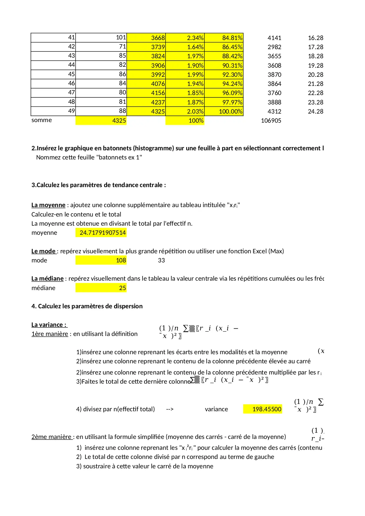 classes selectionner graphique donnees feuille parametres calculez exercice fonction repetitions classe couleur histogramme frequence amplitude