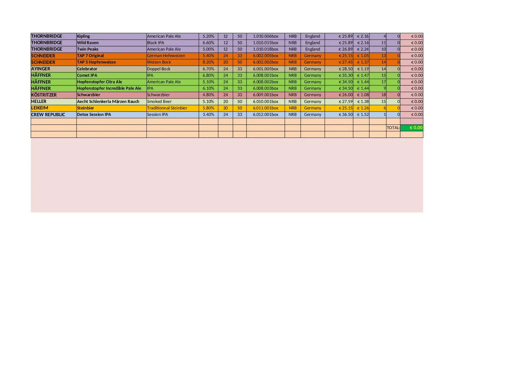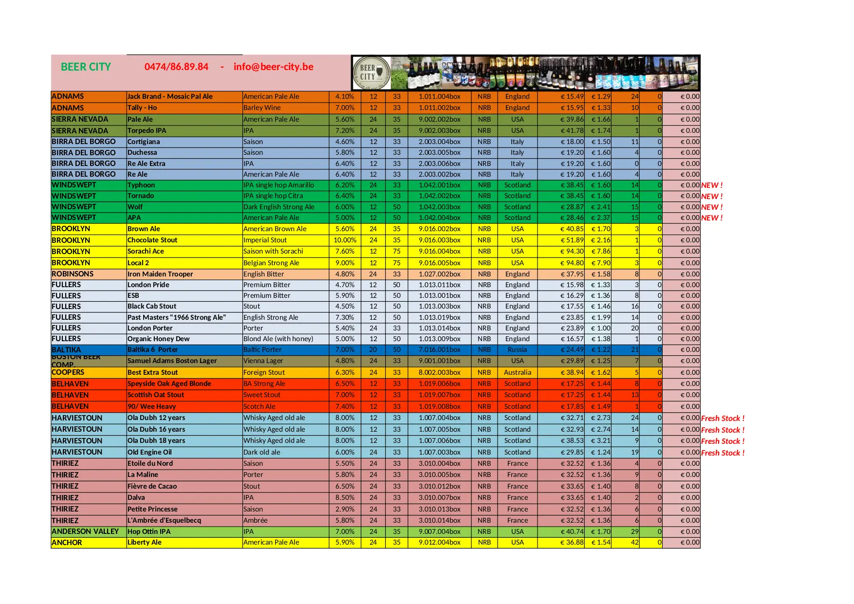 BEER CITY Stock Liste (XLSX)