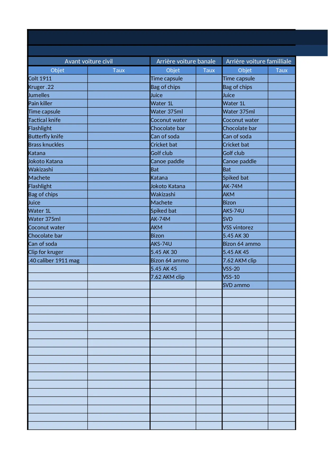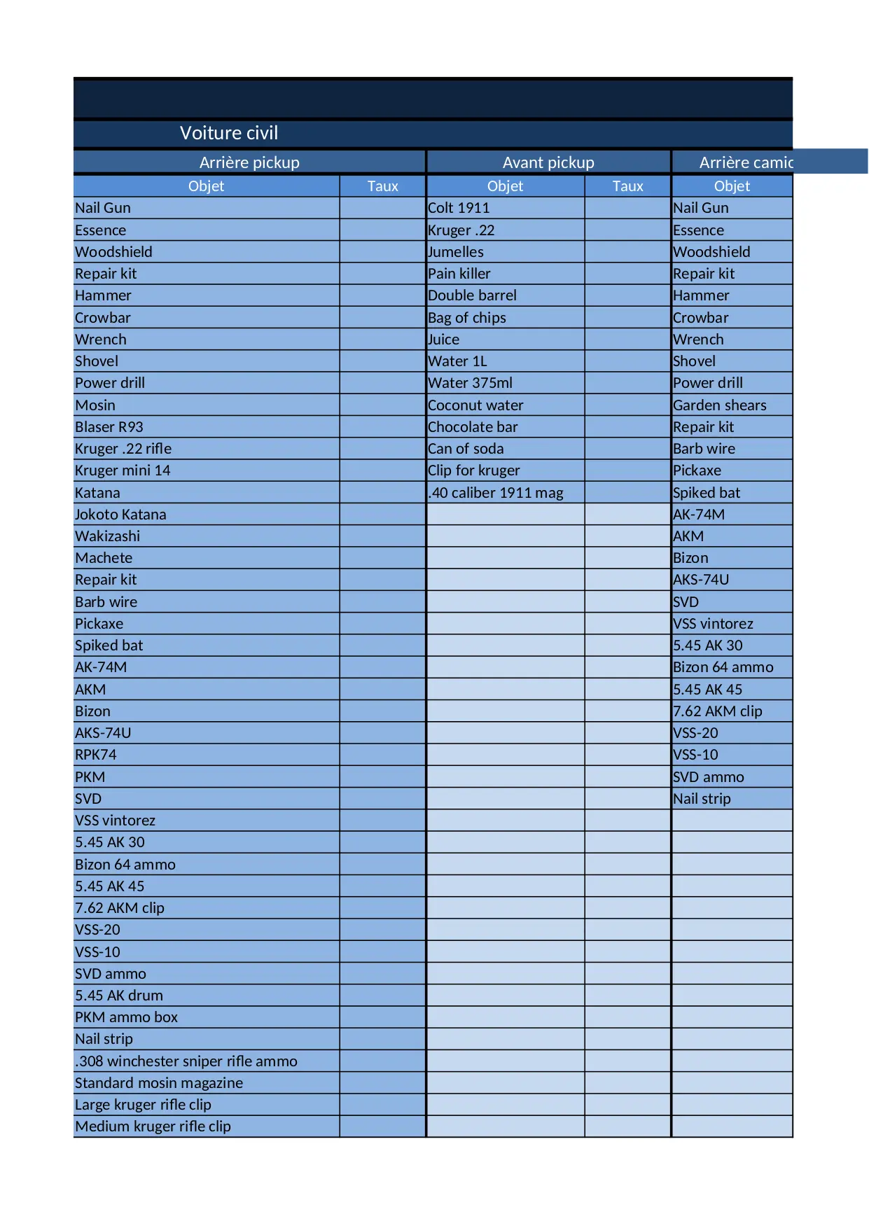 bizon jumelles desert flare eagle rifle flashlight capsule chocolate kruger bandages water stanag objet killer