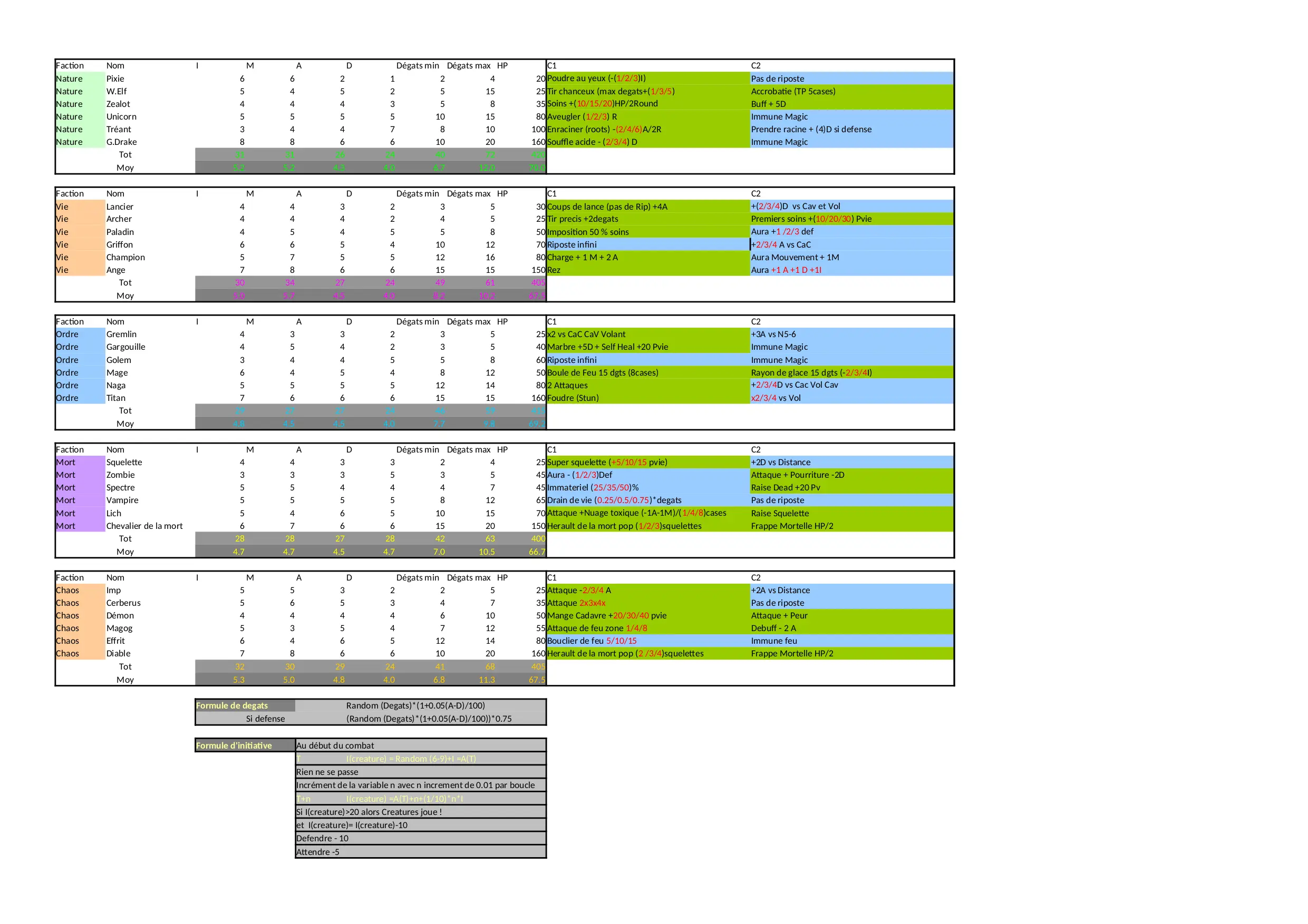 immune riposte soins faction squelette degats squelettes creature ordre nature attaque magic random raise chaos