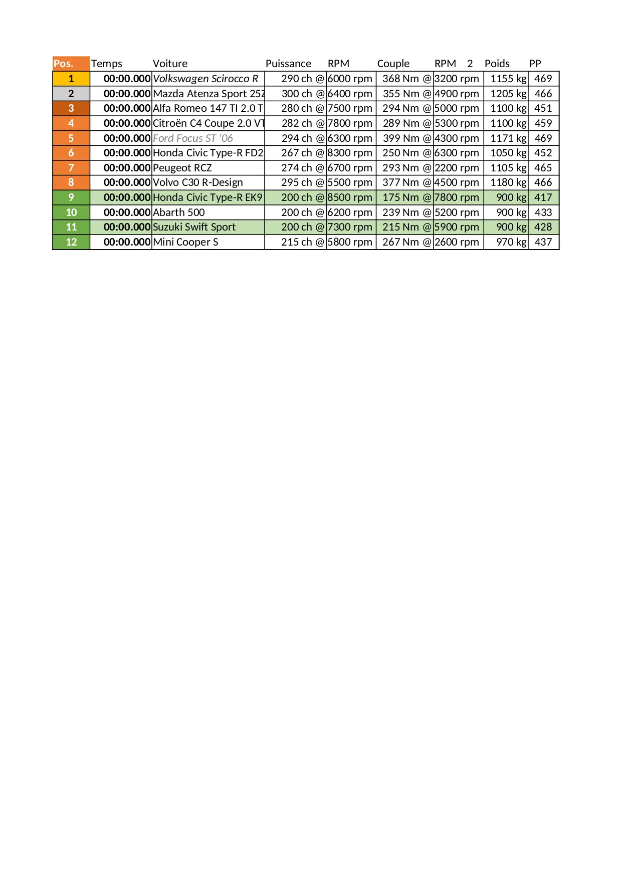 toyota coupe cooper civic perso honda abarth renault 1000m sport course niveau volkswagen peugeot specifique
