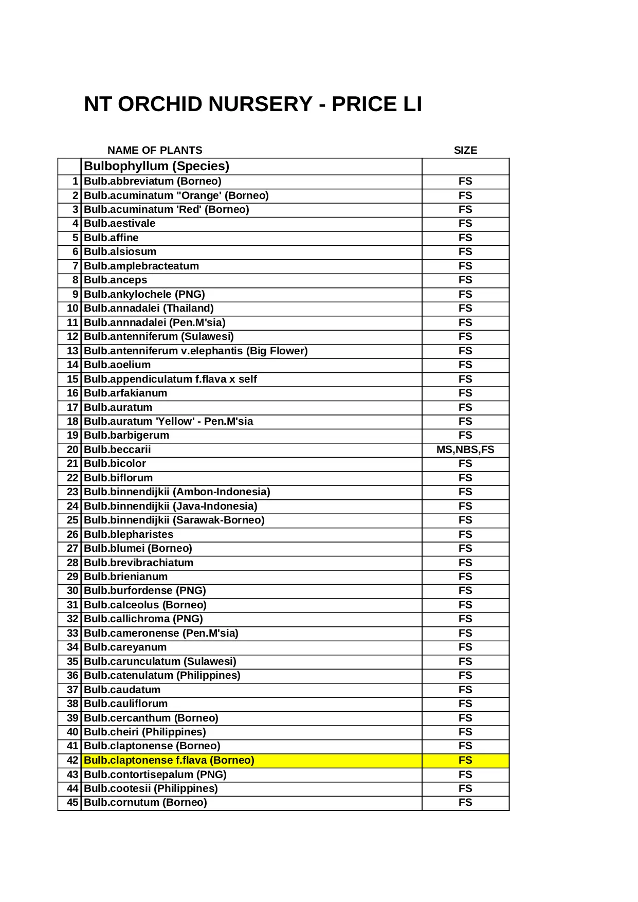 NT ORCHID NURSERY - all lists 2015 (XLS)