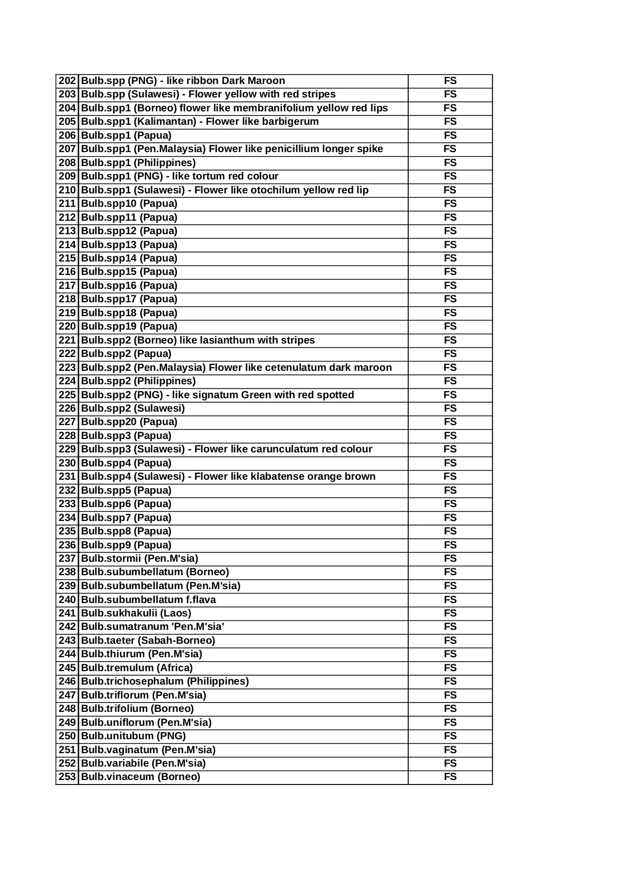 bulbs sulawesi flower acuminatum appendiculatum borneo orchid flava auratum thailand aoelium nursery price elephantis antenniferum
