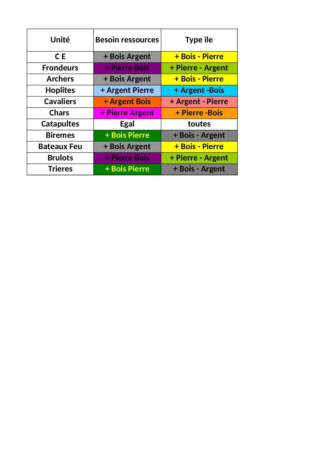 hoplites catapultes toutes besoin ressources archers argent bateaux pierre unite frondeurs biremes cavaliers chars brulots