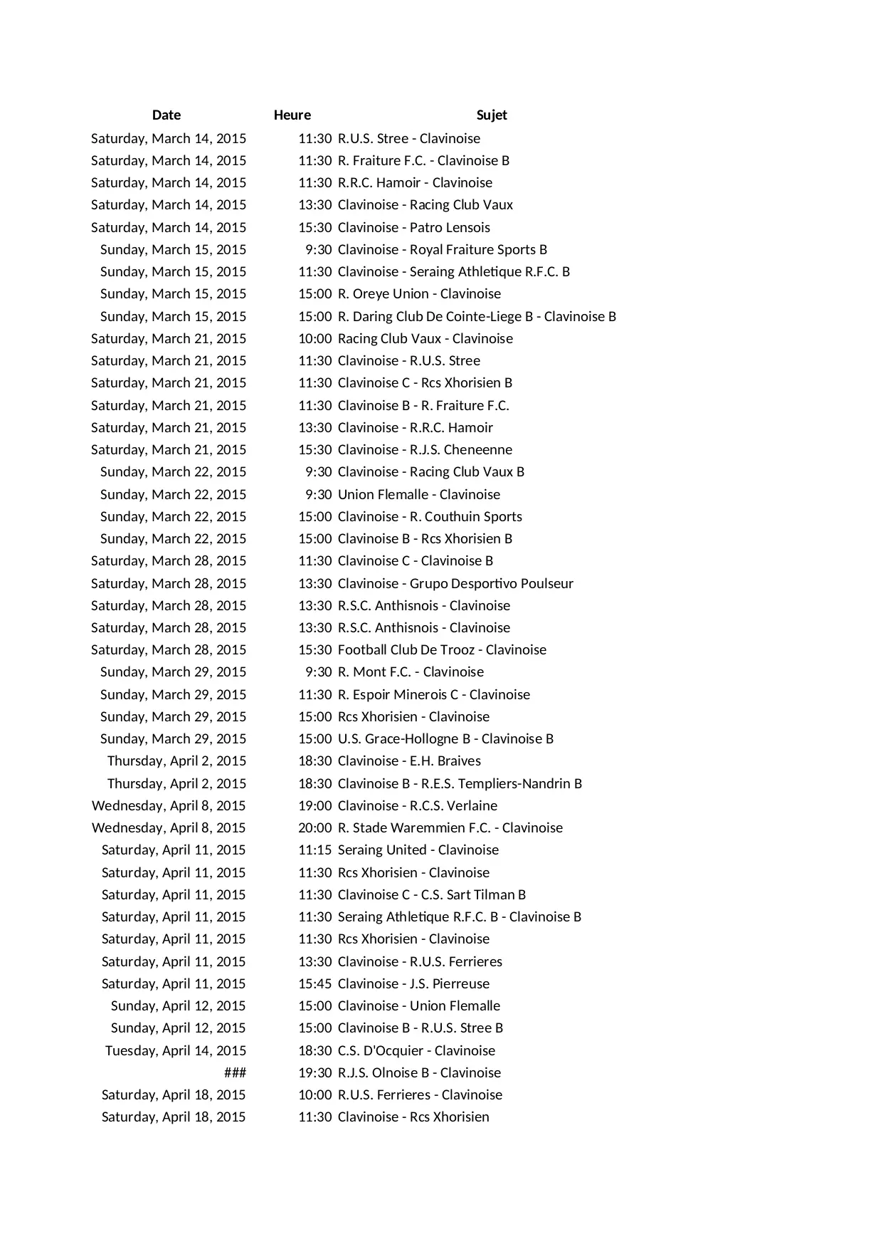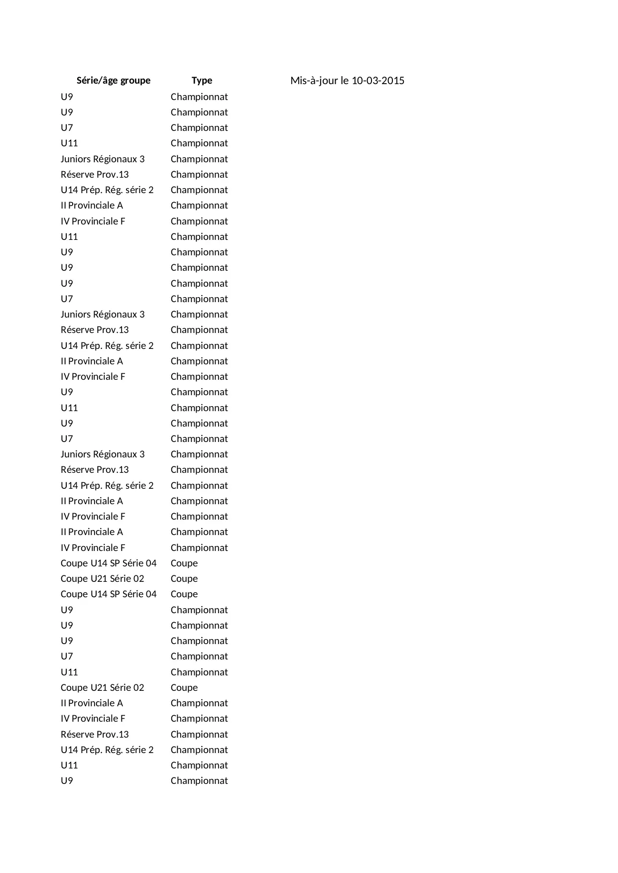 championnat union 31t11 31t15 31t18 31t09 serie 31t13 reserve clavinoise regionaux xhorisien coupe provinciale juniors