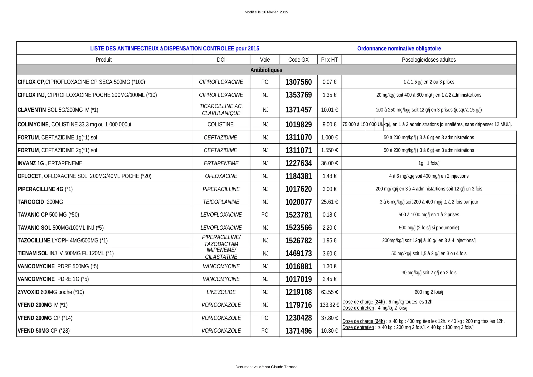 - Liste MEDIC AI à Dispensation contrôlée 2015 .xls