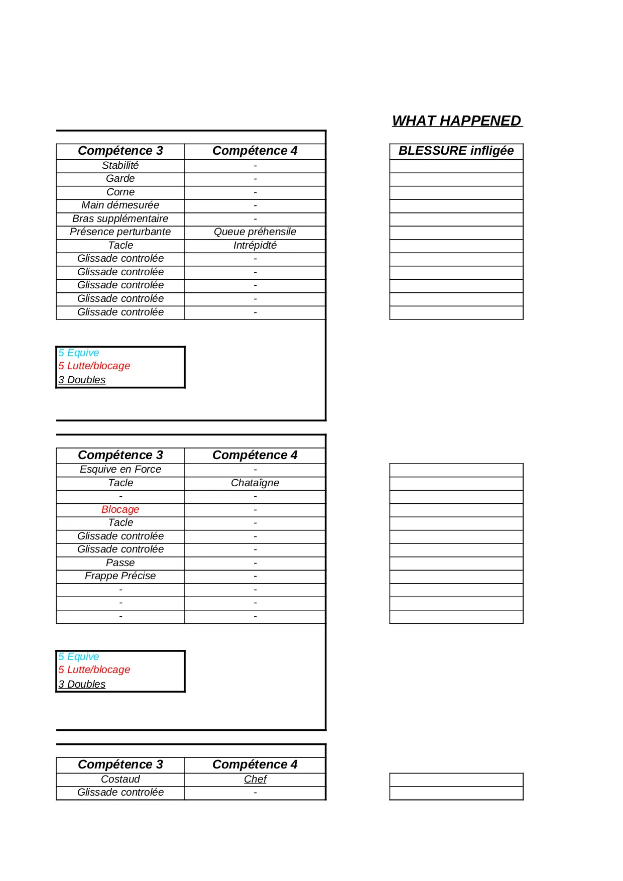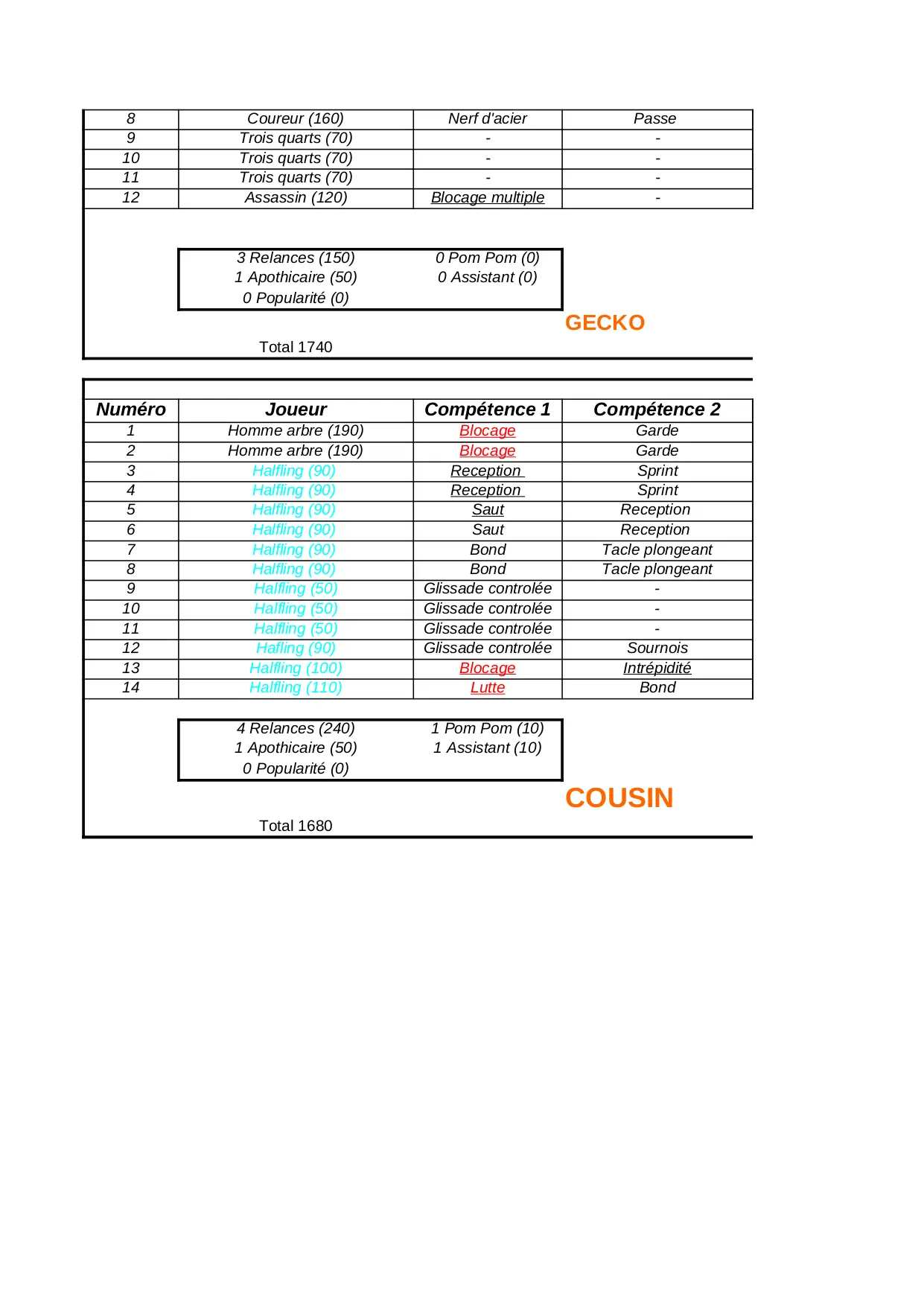 serviteur equilibre snotling plongeant skaven tacle blocage total glissade controlee lutte esquive garde competence halfling
