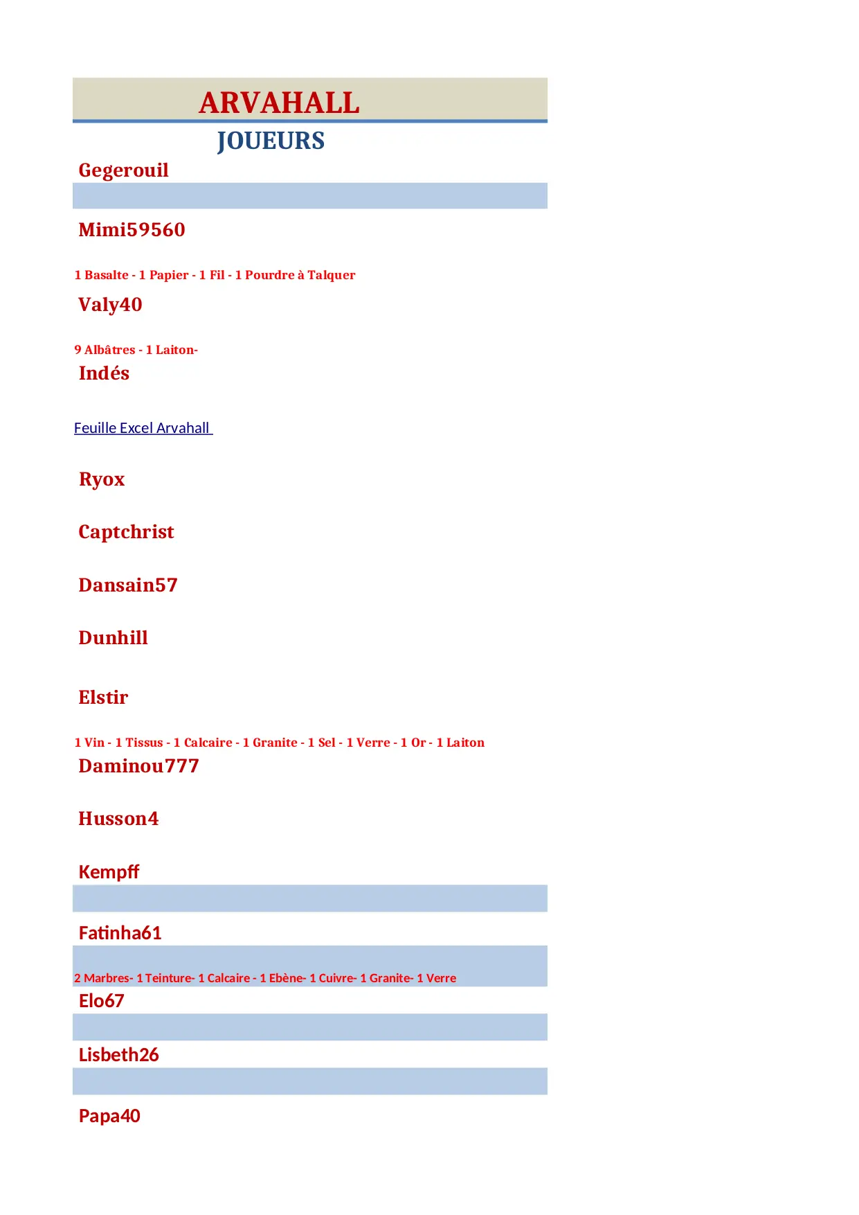 Arvahall (XLSX)