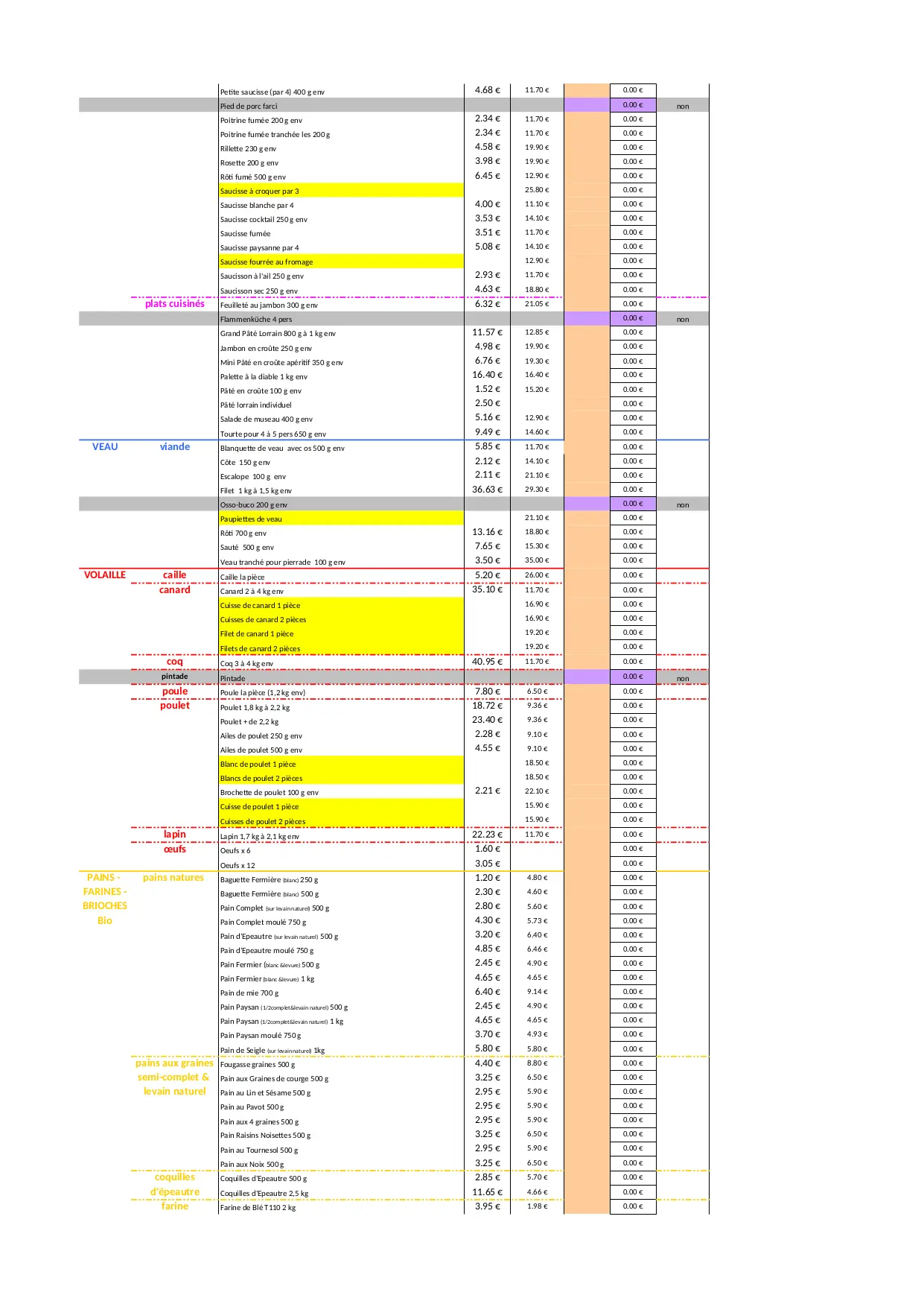 farine canard poulet blanc chaouette jambon bottin biere saucisse klein filet matte jacquot epeautre tranche