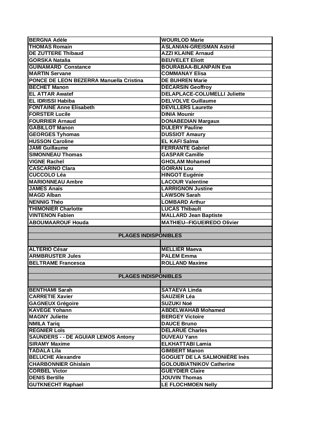 indisponibles antoine plages camille marine marie thomas lucas valentin maxime clara sarah louis plage manon