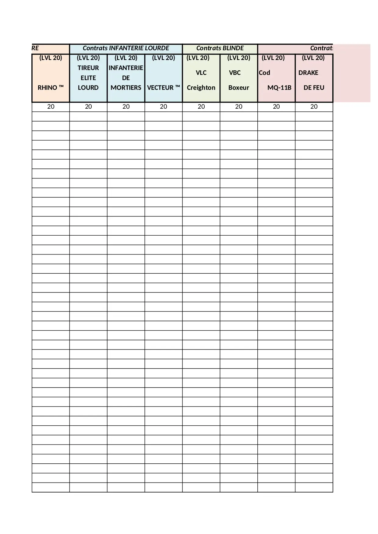 soutien contrats commando guepard droits blizzard defenseur assaut sommet parachutiste infanterie lourde orage iroquois vipere