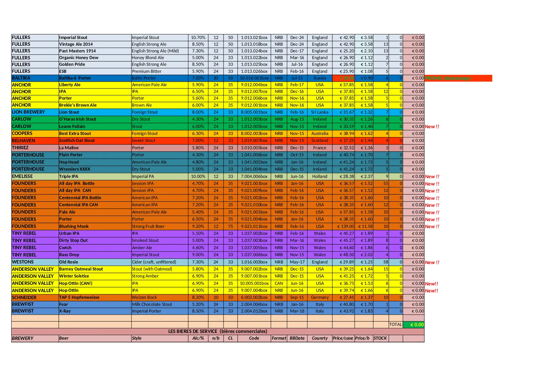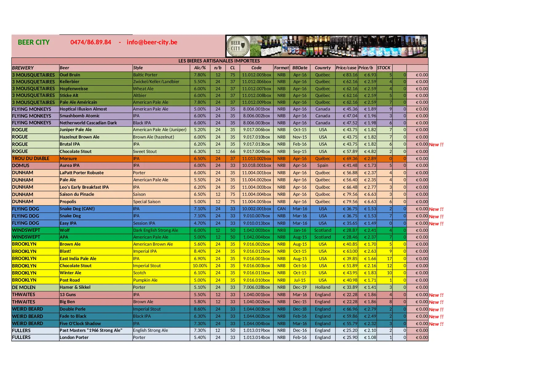 BEER CITY Stock Liste (XLSX)