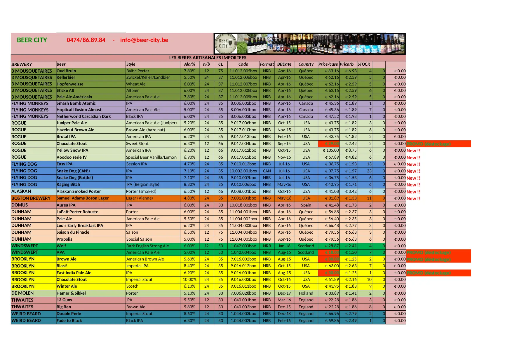 BEER CITY Stock Liste (XLSX)