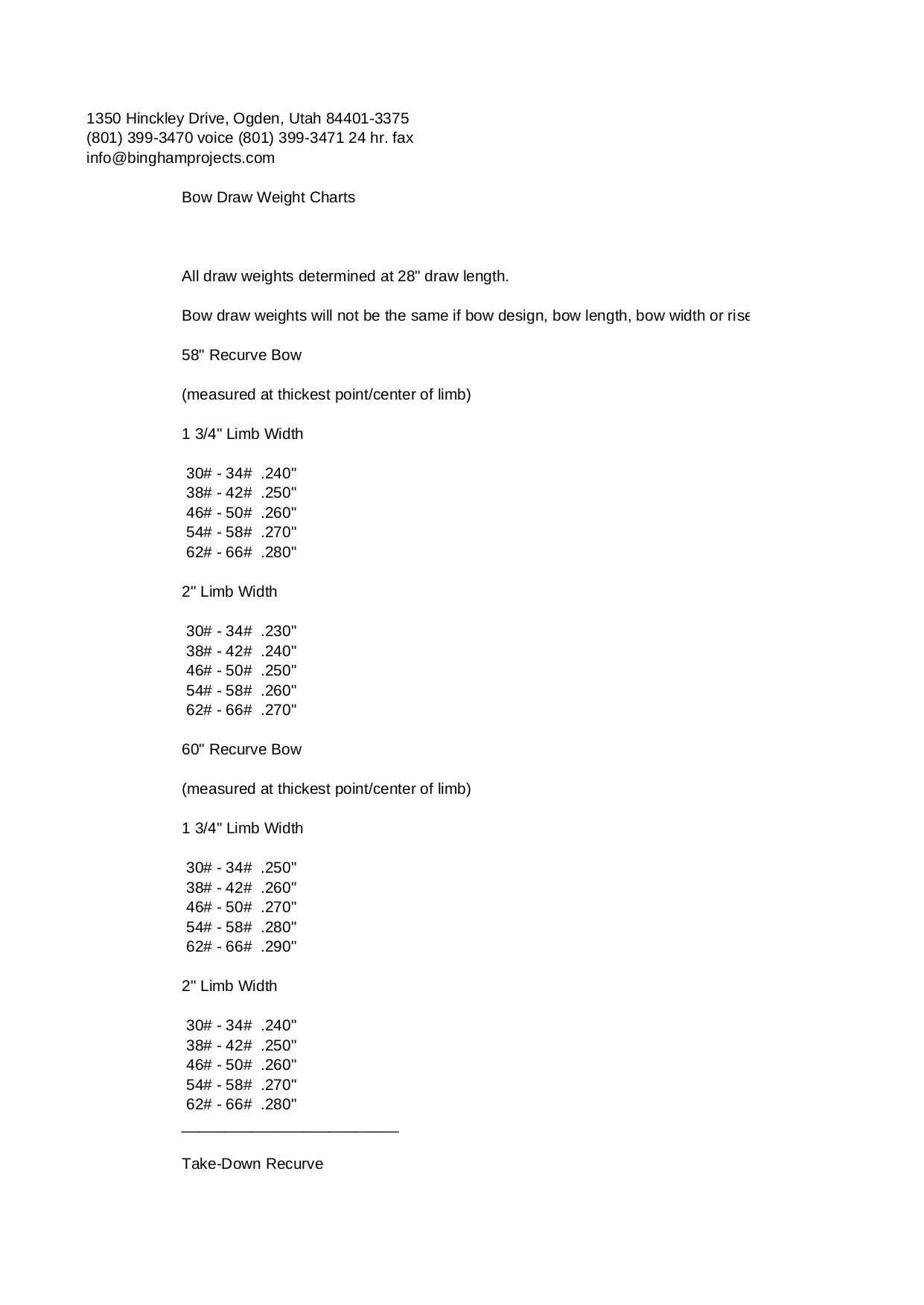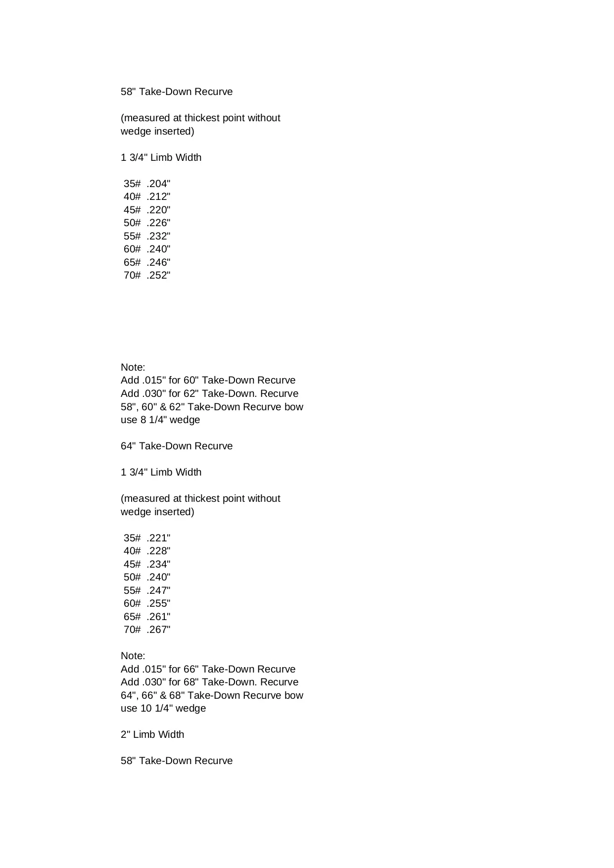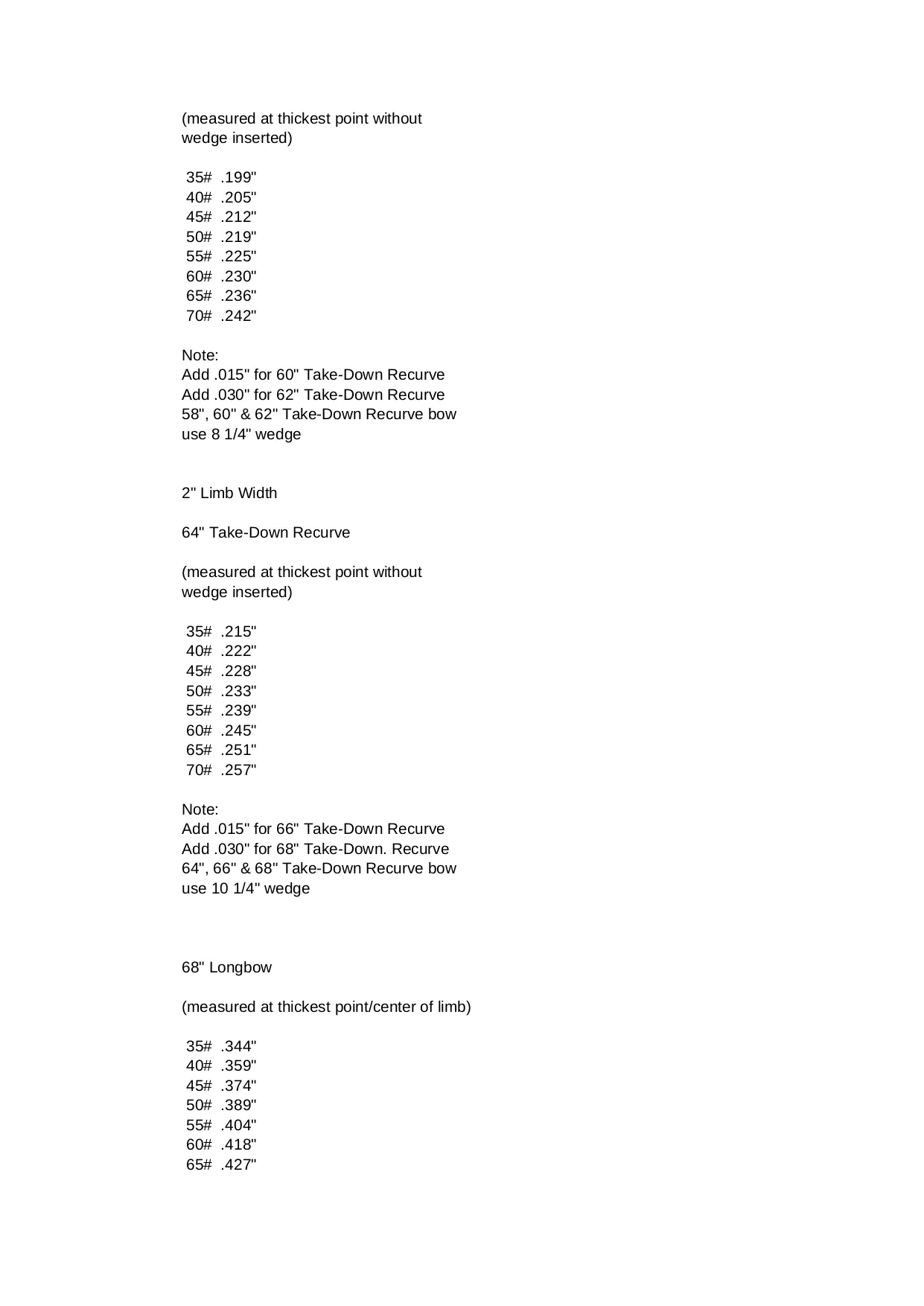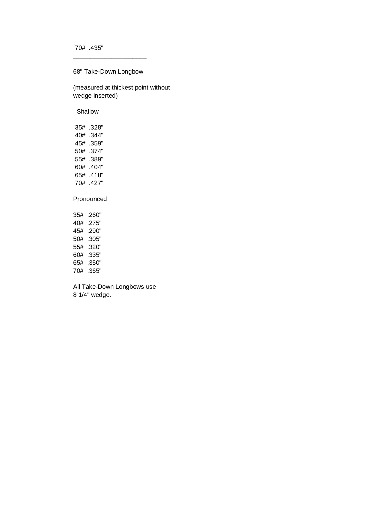 length recurve weights wedge hinckley thickest center measured longbow inserted point pronounced shallow width without